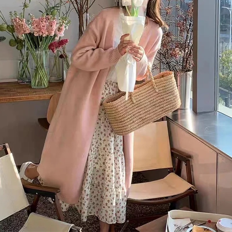 レトロニットカーディガン レディース ニットアウター 秋冬新作ゆったりけだるさ風 ファッション ニットロング セーター
