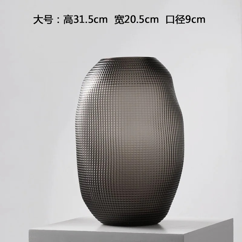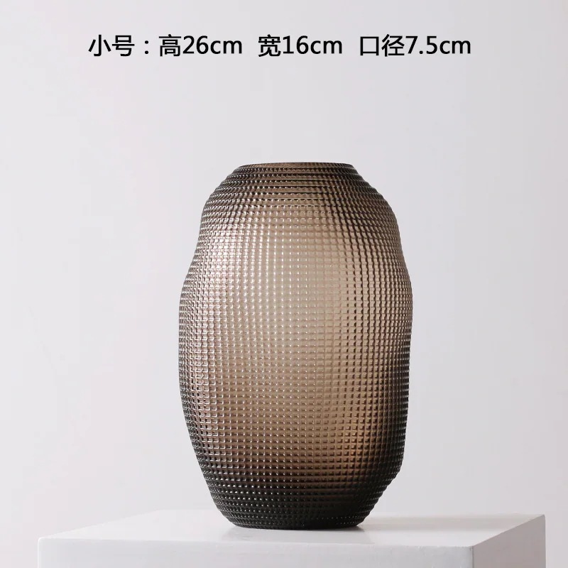 創意簡約波点芸術ガラス花瓶琥珀色置物応接間大丸腹口径水養ソフトアクセサリー