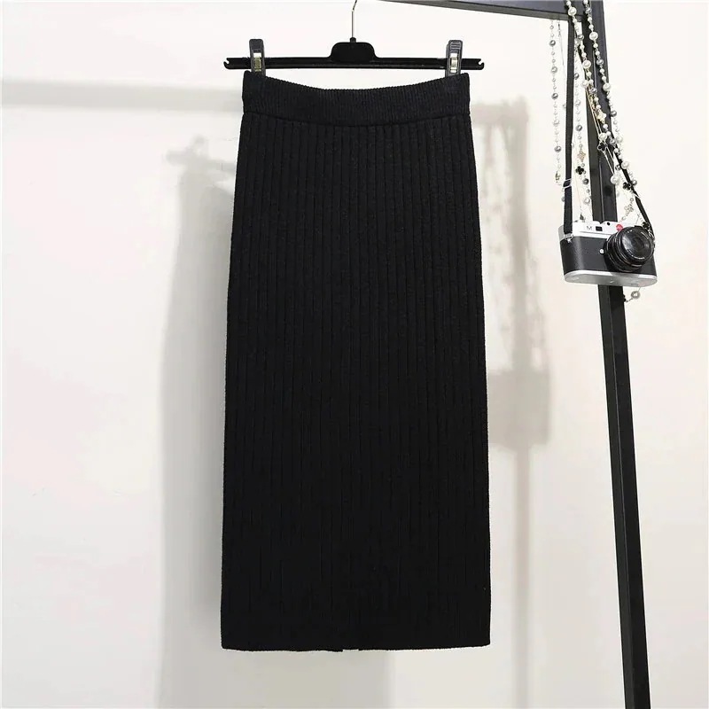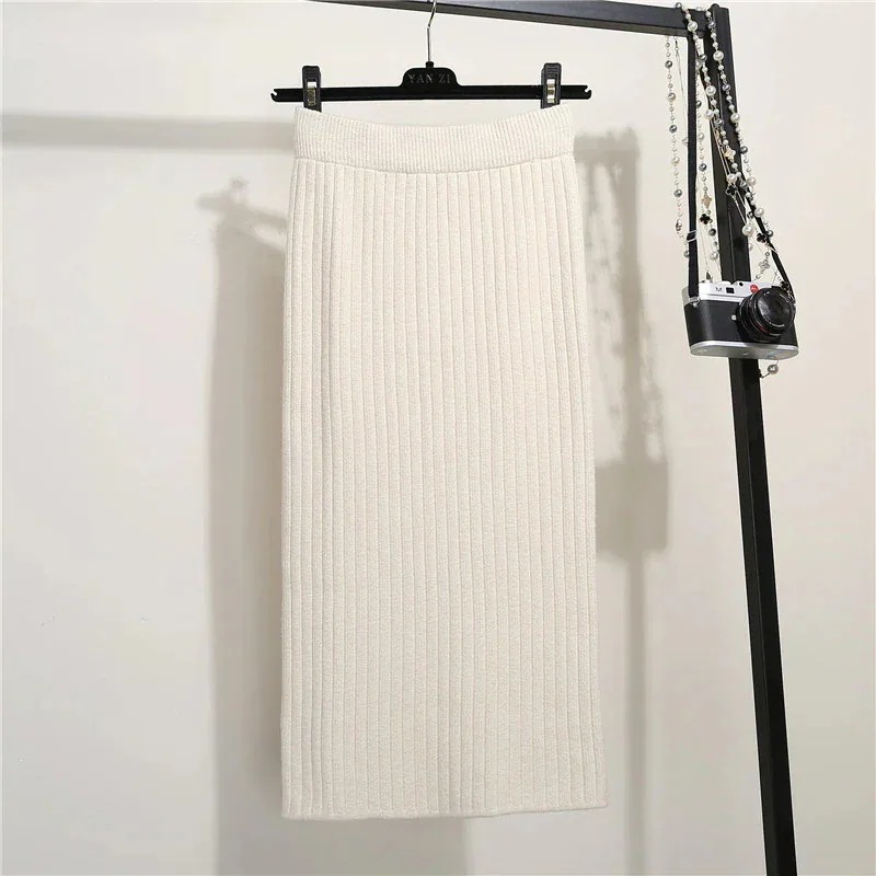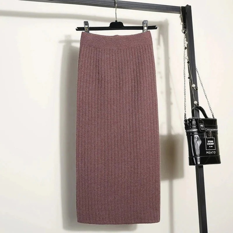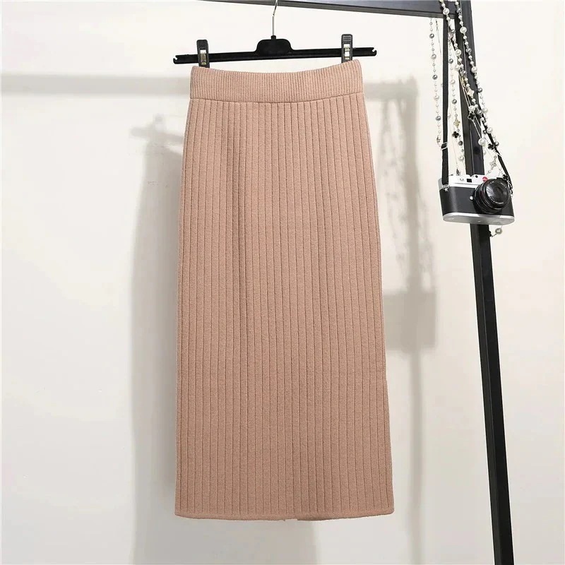 プリーツスカート ニットスカート マキシスカート セミロング マーメイドスカート スリット 厚手 ニット タイトスカート ハイウエスト 毛糸