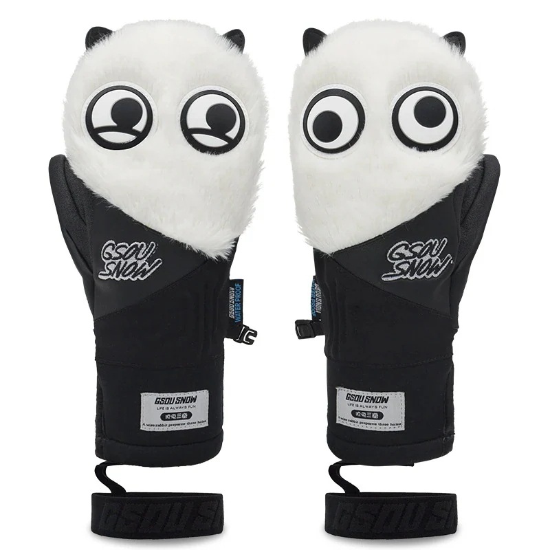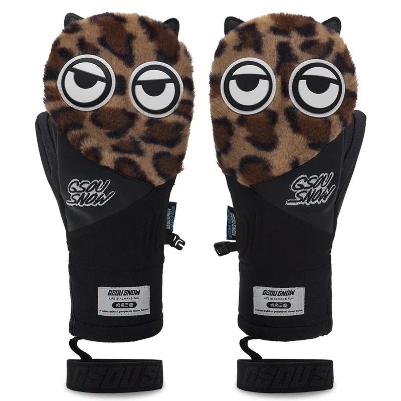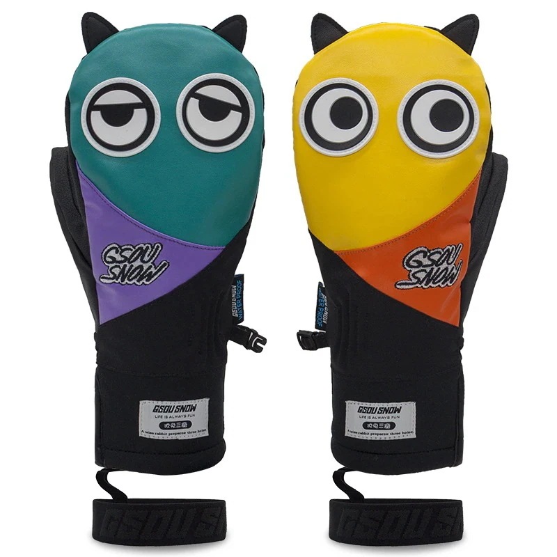 【限时折扣】スノーボード グローブ スノボ スキー スノー 手袋 動物柄 耳付き 可愛い 保温 防寒 メンズ レディース カートン 防水 切り替え 絞り染 もこもこ ふわふわ