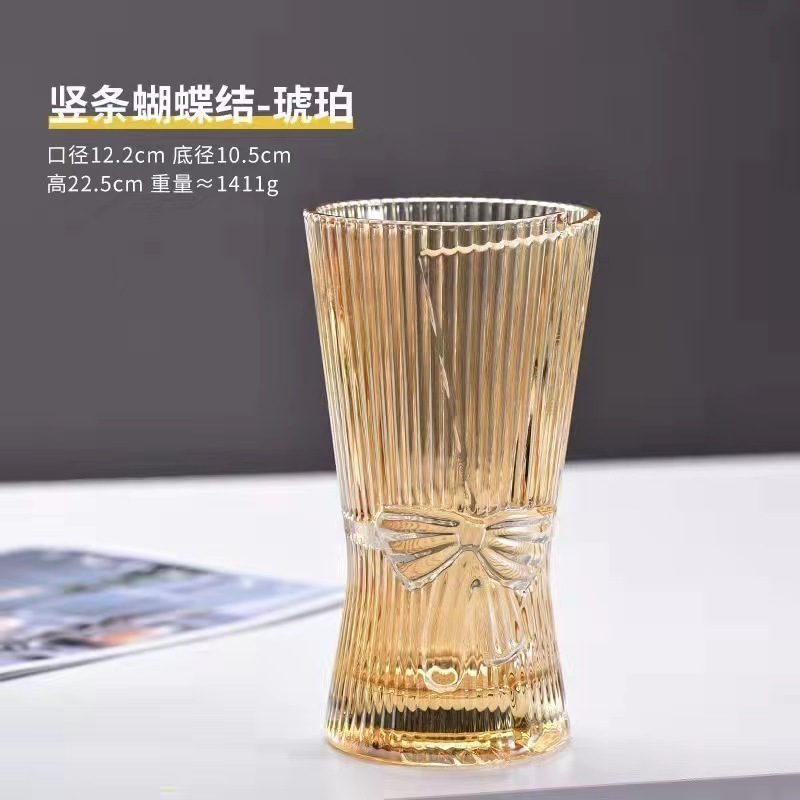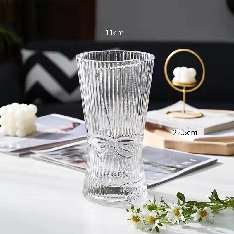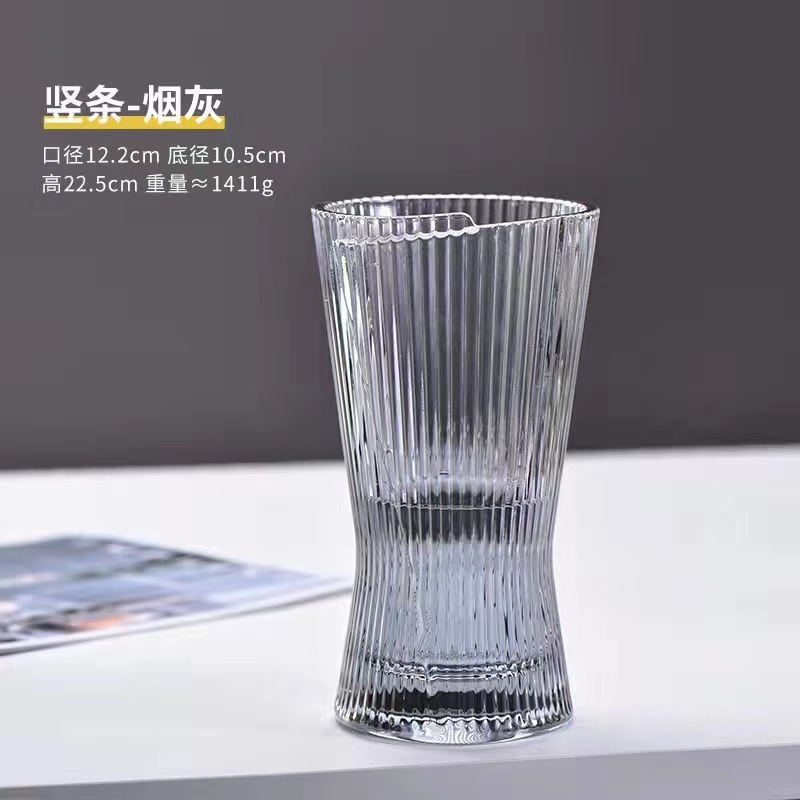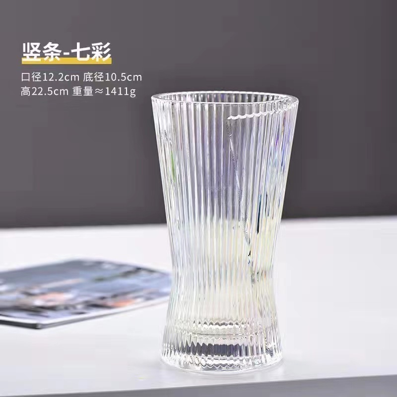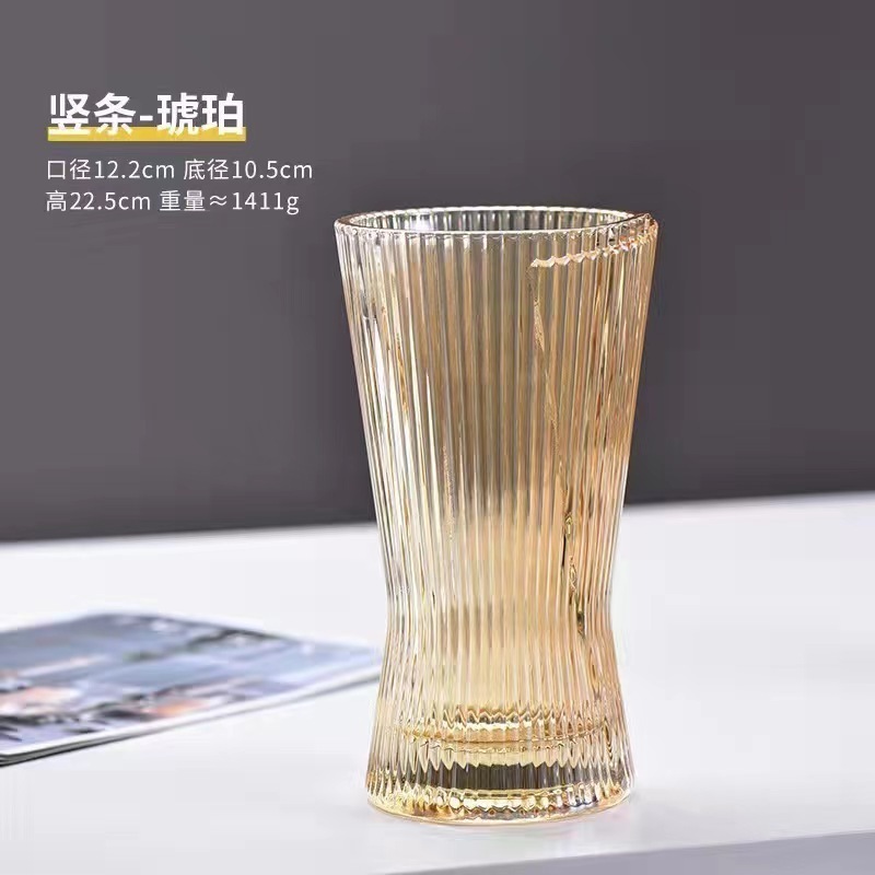 縦紋束腰ガラス花瓶アイデアヨーロッパ式透明水養生け花器リビングルームインテリア