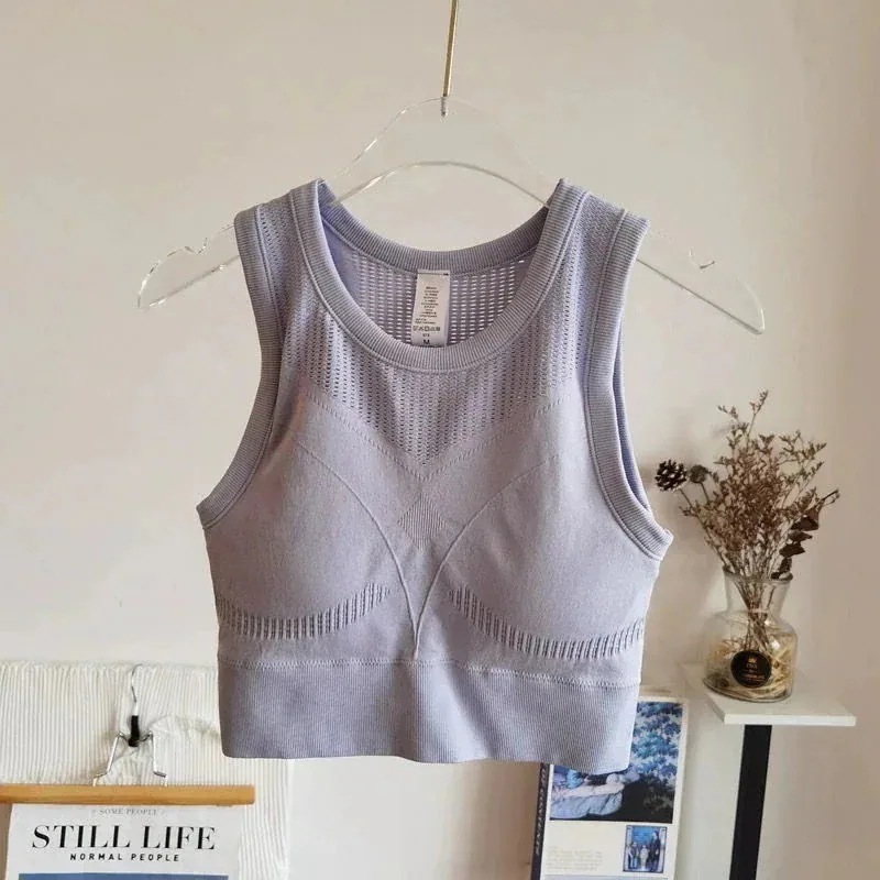 お家ヨガウェア カップ付きインナー ランニングベストの薄手ヨガトップスおしゃれヨガウェア