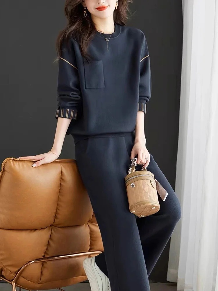 2025年秋新作レディース高級感ファッションセット 若々しくおしゃれなウエストカバー&体型カバーカジュアルツーピースセット