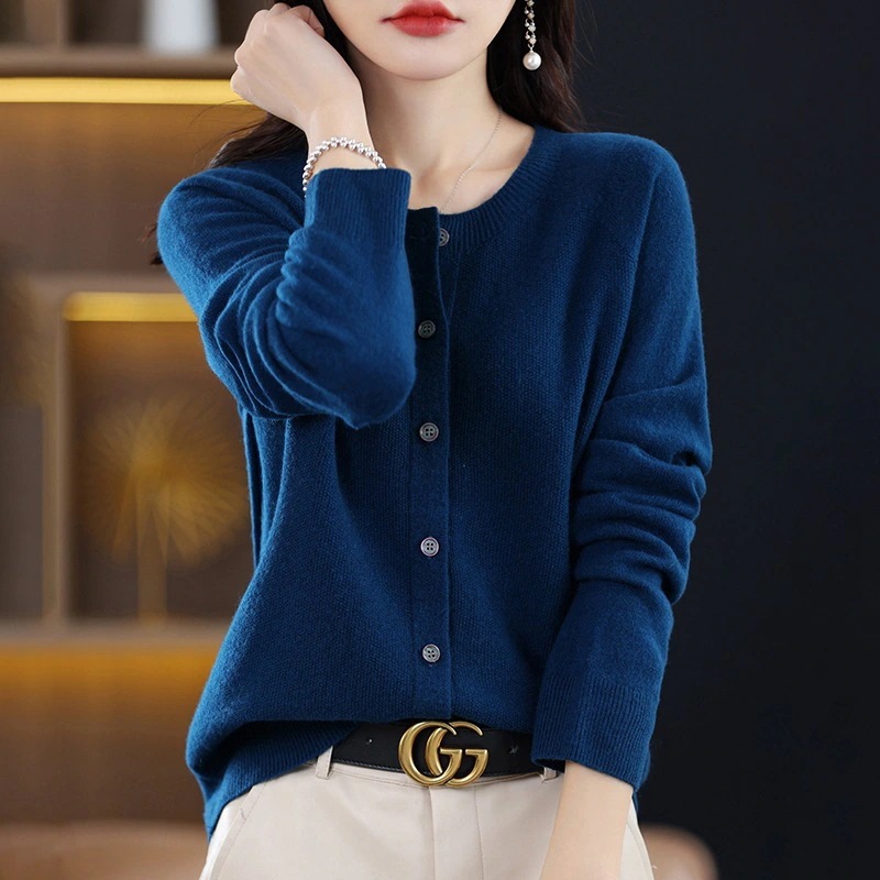 ラウンドネックニットカーディガン女性用 桂花針デザインアウター 秋用ゆったりクロスボーダーセーターカーディガン 長袖ニットベースレイヤー女性用 ニットカーディガン