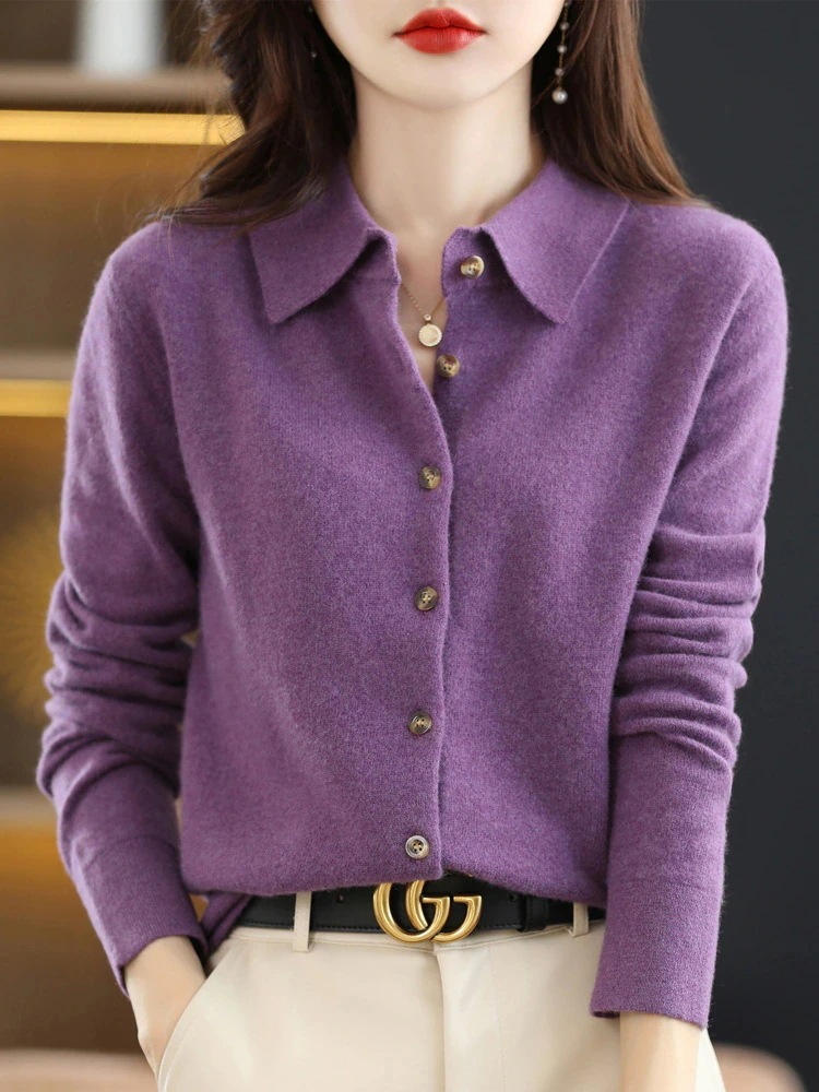 カーディガンポロシャツ春用ニットカーディガン女性用 ラペルジャケット女性用秋用ゆったり長袖カーディガンニットセーター女性用セーター