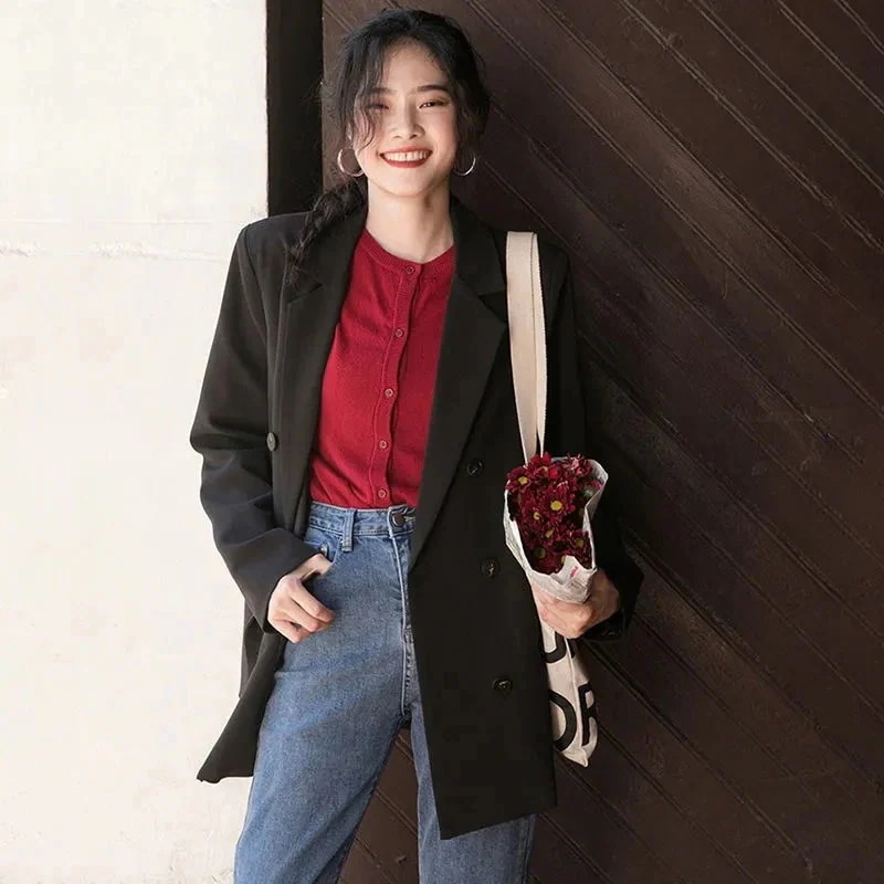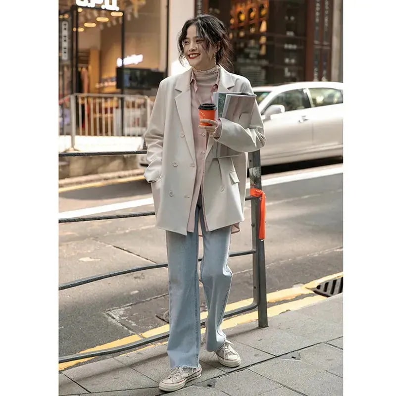 ストリート風スモールスーツパッドショルダーカジュアルins風ピンクジャケット女性用 春秋向けデザイン性小衆薄手トップス トレンチコート・スーツカラージャケット・ウールコート