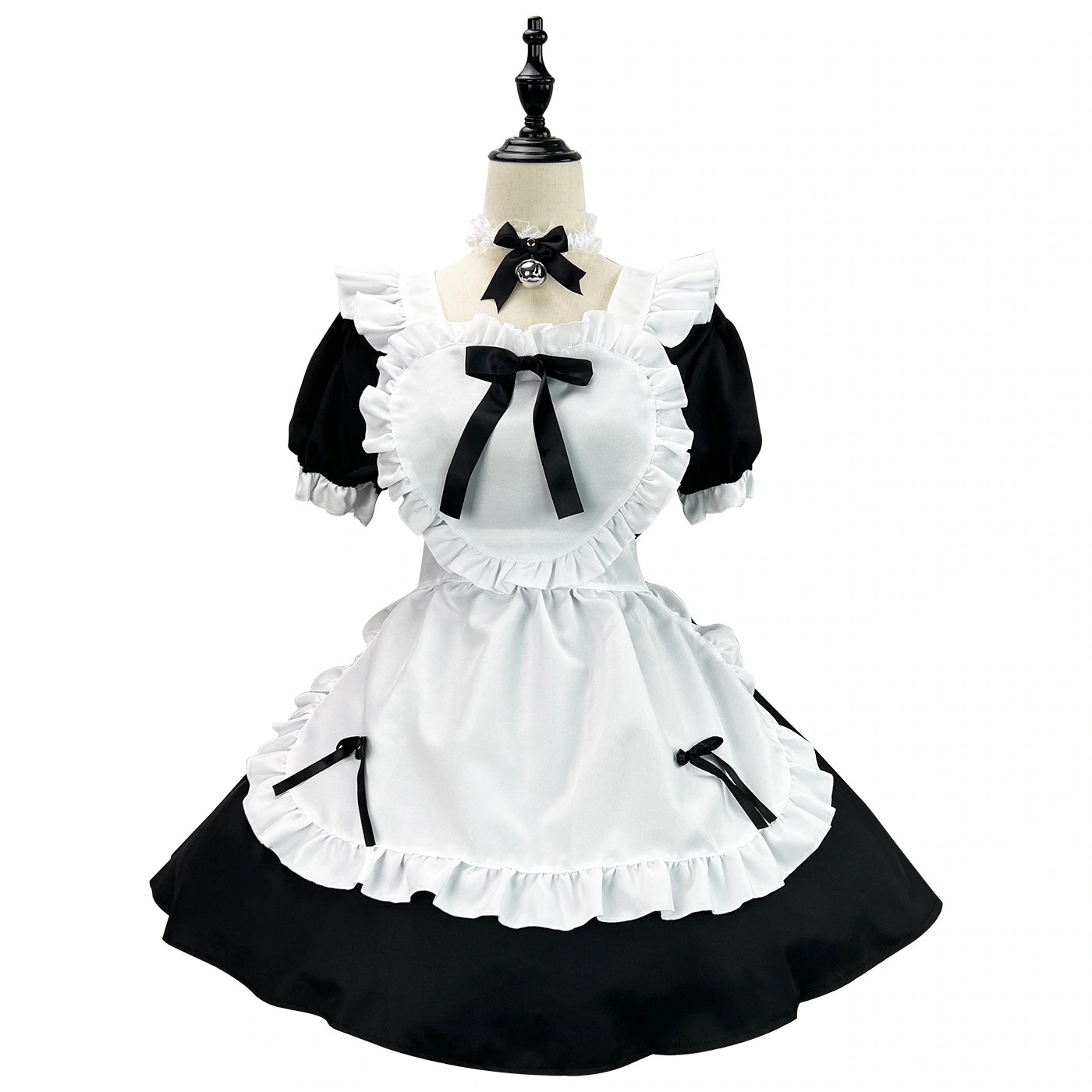 日系ブラック定番メイド服アリス優しい女の子ロリータメイドスカートカフェワンピースcos服