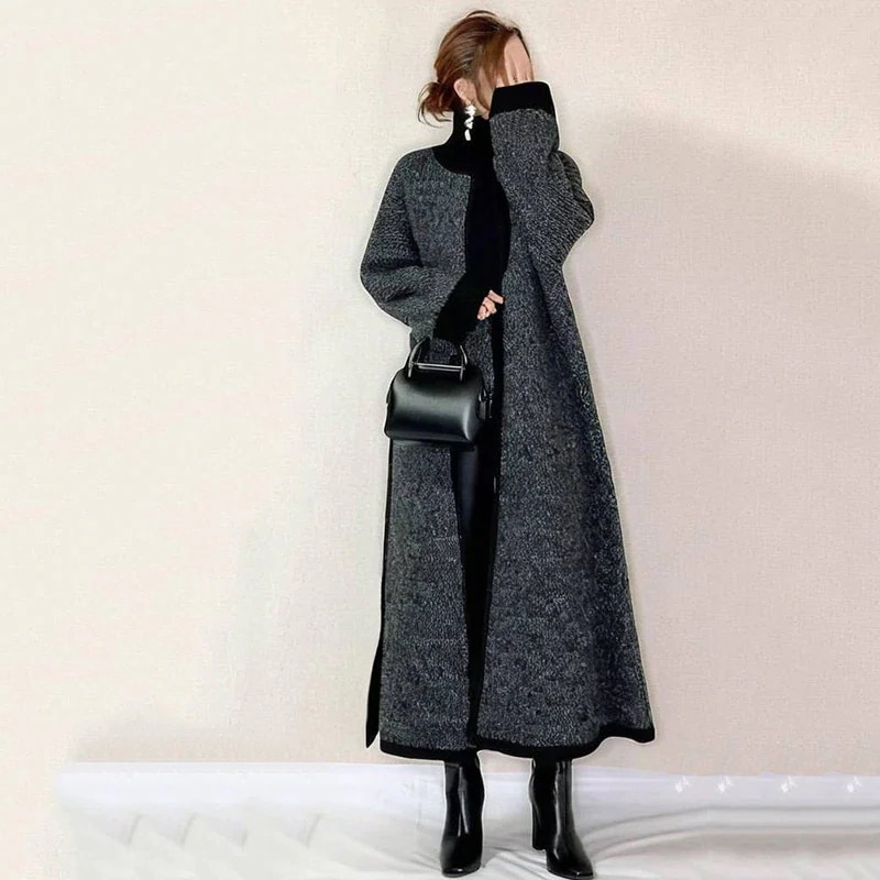 新作ツイードのフルラップコートロングコートパーカー・ブレザーネックコート・ツイードコート