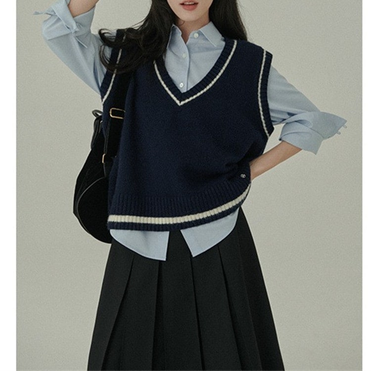 シャツが小さくて良いCP!アカデミアガールレトロ百合Vネッククラッシュベストベストベストベストベストベスト