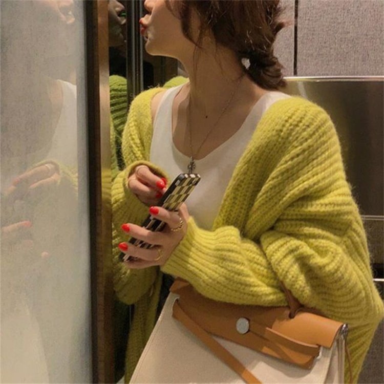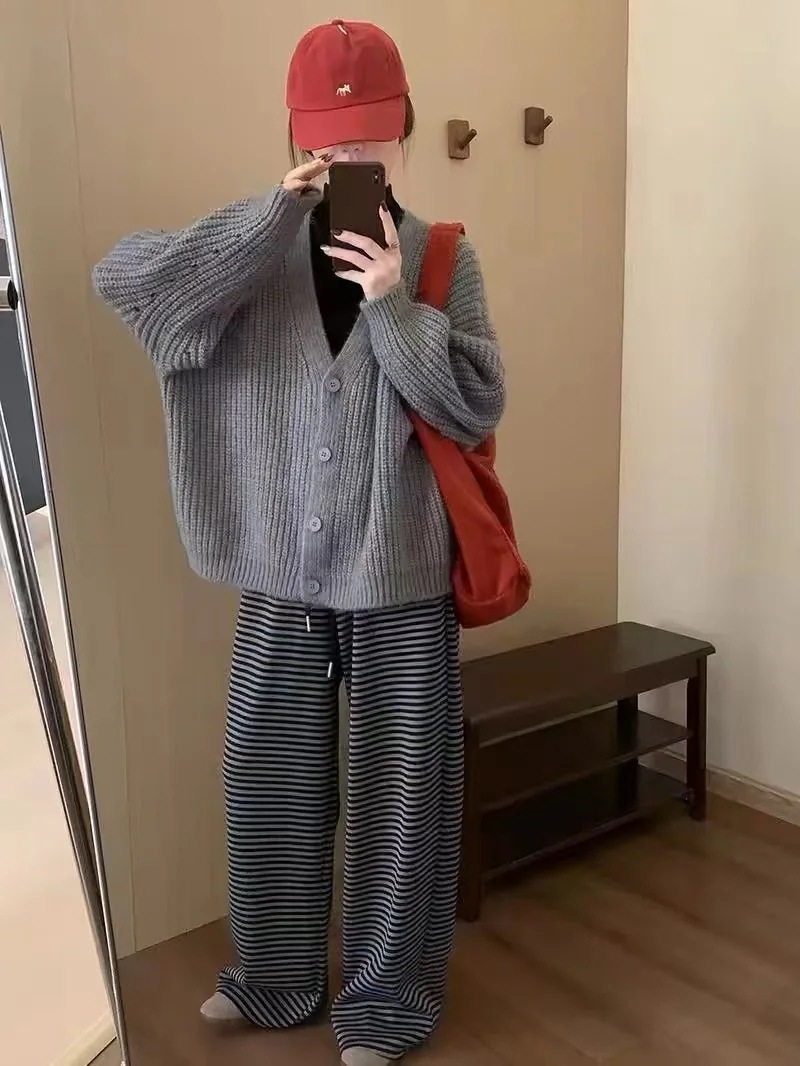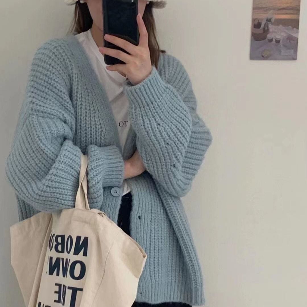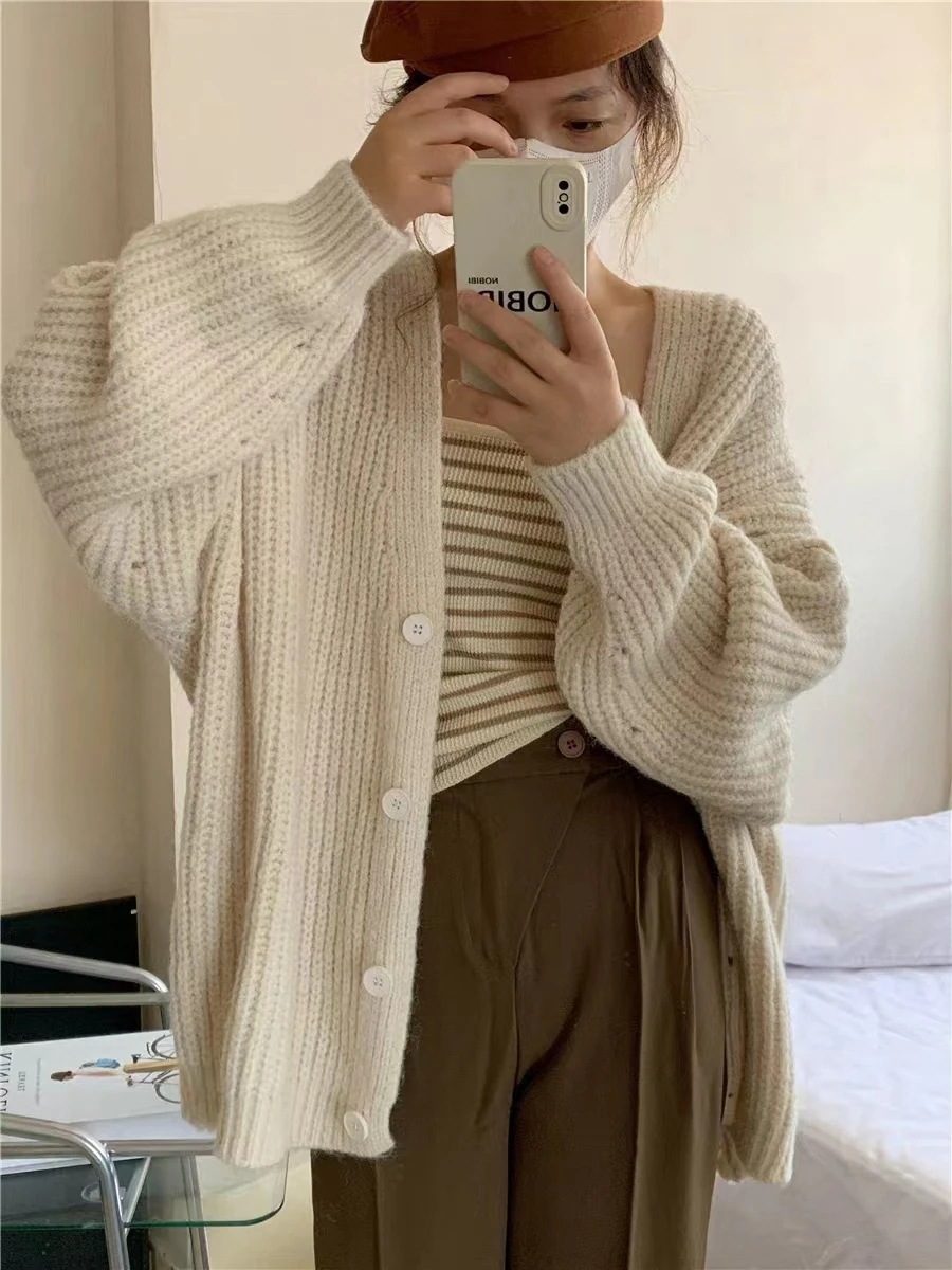 2025ピンクVネックカーディガンレディース アウターはゆったり甘ニットのけだるい風コート長袖ニットカーディガン