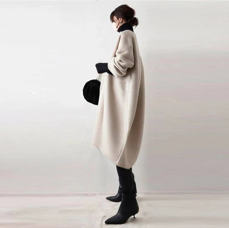 日系2024秋の新作ノーカラー長袖ミディアムツイードコートパーカー・ブレザーネックコート・ツイードコート