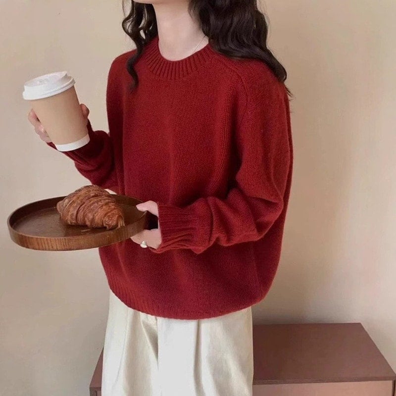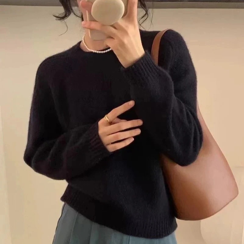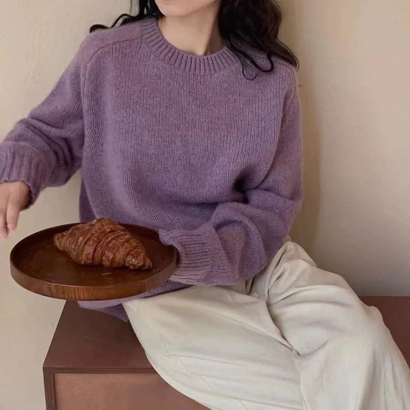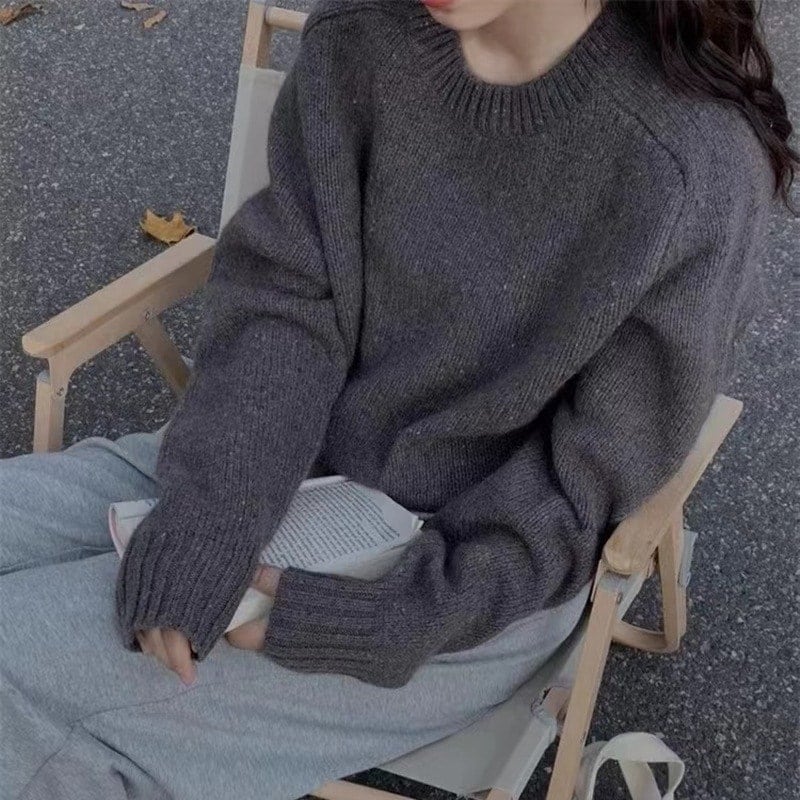 ニットセーター女性用アウター秋冬セーター 新作ラフなルーズシルエットカーディガンプルオーバーセーター 丸首無地トップス女性用セーター