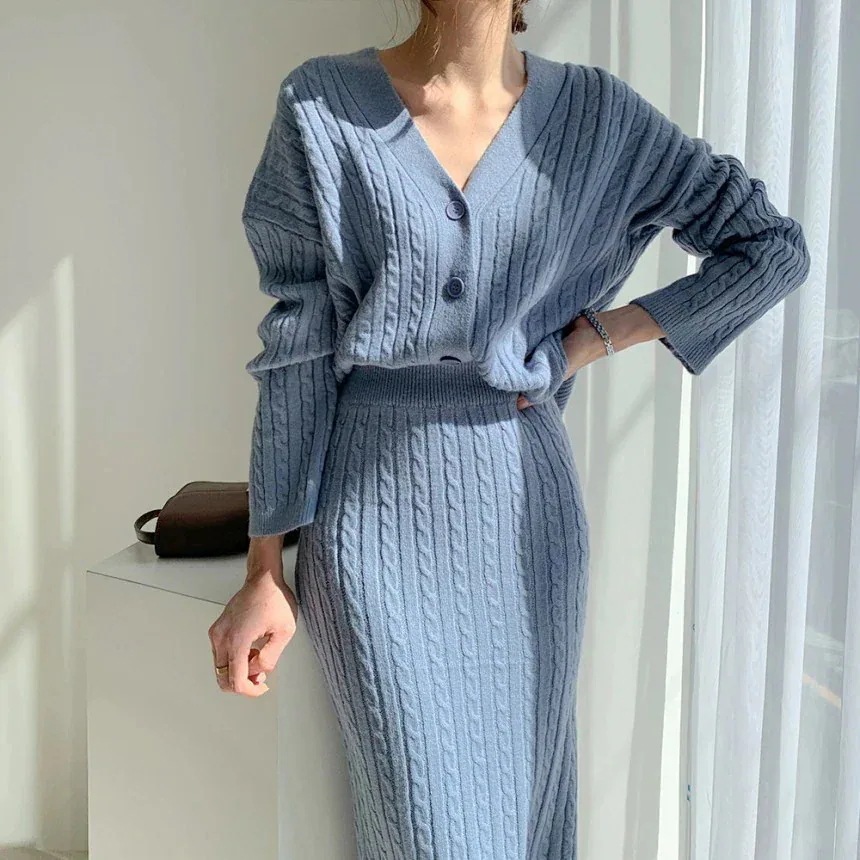 【2枚購入で 2oo円OFF!】新作 おしゃれ シンプル レディースセットアップ ニットカーディガン スカート 二点セット 気質 涼しく楽ちんセットアップ セット