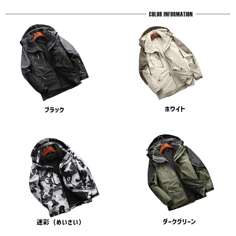 3WAY 秋 防寒 ジャケット 保温 フード付き メンズ 撥水 裏起毛 冬 秋冬 春 ウインドブレーカー 取り外し可能 作業服 マウンテンパーカー ワーク 防風 裏フリーズ