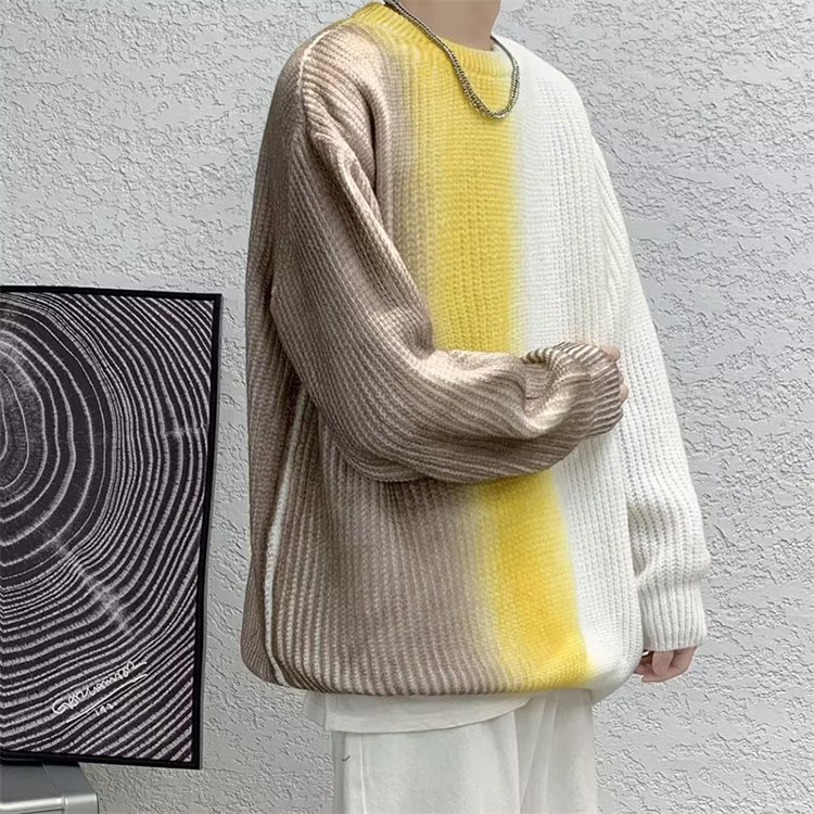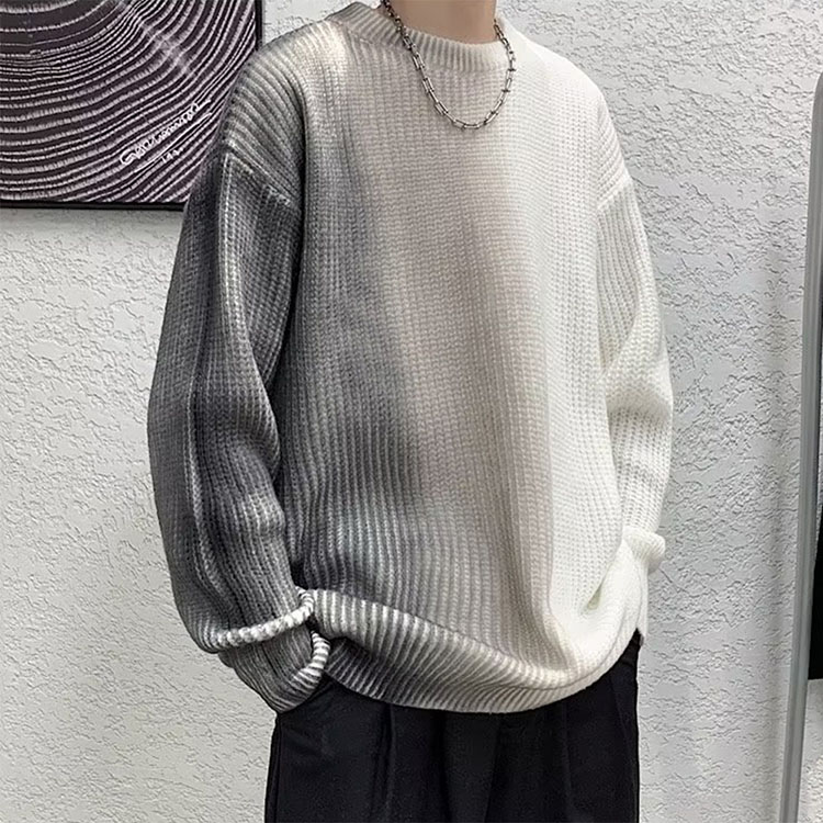 クルーネック 長袖 ニット カジュアル 秋冬 暖かい 防寒 メンズ おすすめ おしゃれ セーター 大きいサイズ トップス グラデーション 新作