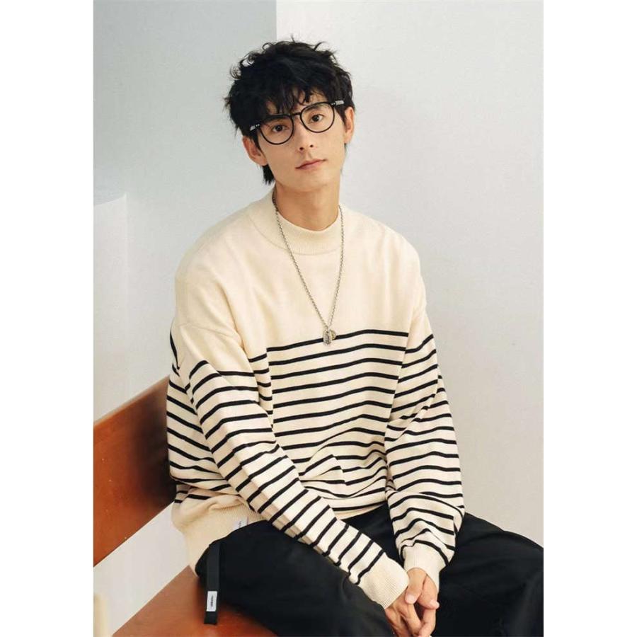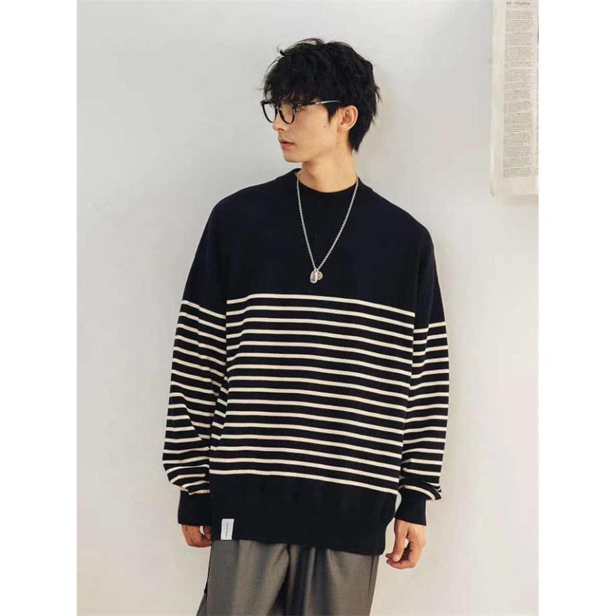 ニット 秋冬 ボーダー プルオーバー ニットセーター 春 暖かい 長袖 ゆったり トップス 丸首 ストリート セーター クルーネック 男性 紳士 メンズ ニットソー