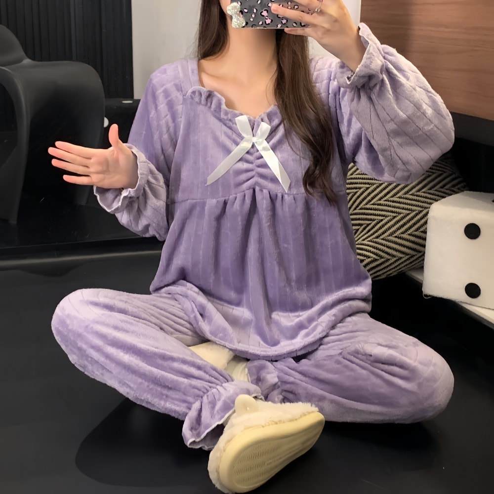 冬季レディースフリースパジャマ 長袖増量起毛 プリンセススタイルスウィート スクールスタイルホームウェア 保温