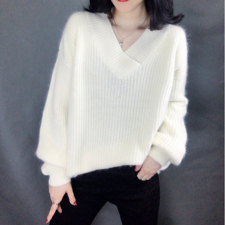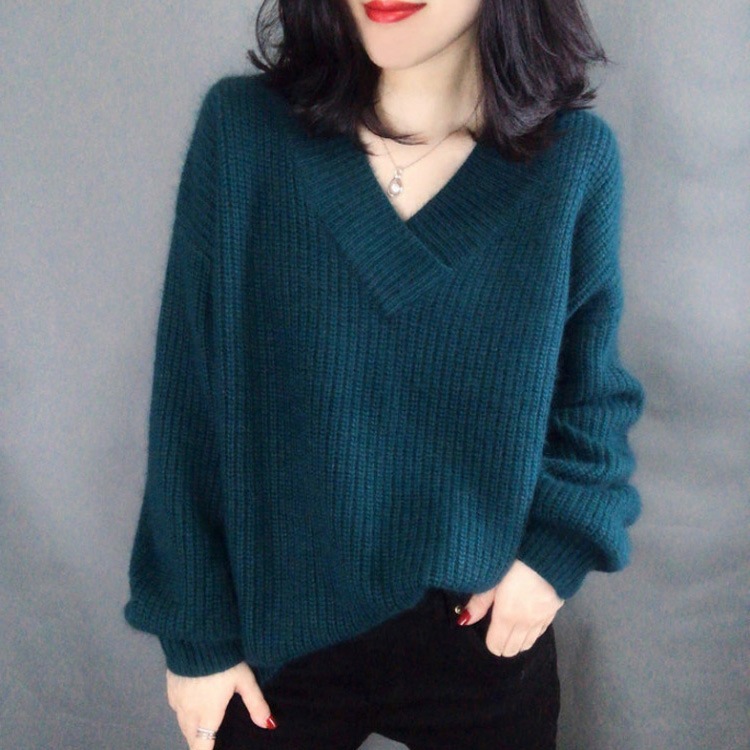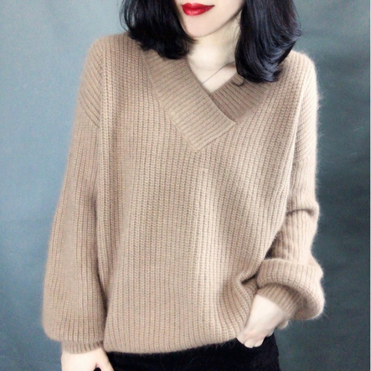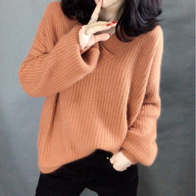 2025年秋冬 ゆったりとしたVネックの厚手セーターニットのベースレイヤートップスと合わせてアウターとして着るのにぴったり