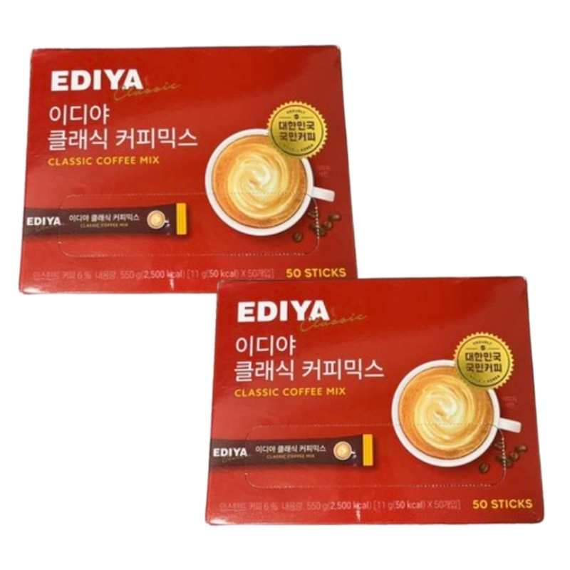 イディヤクラシック コーヒーミックス 11g×50本×2袋 韓国コーヒー ミックスコーヒー インスタント 甘さ控えめ まろやか カフェオレ風 大容量 スティックタイプ