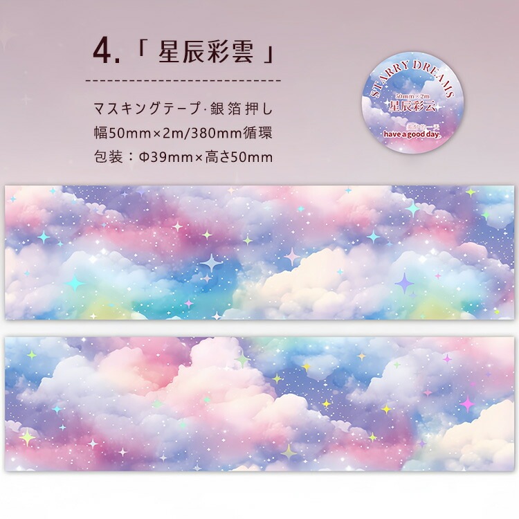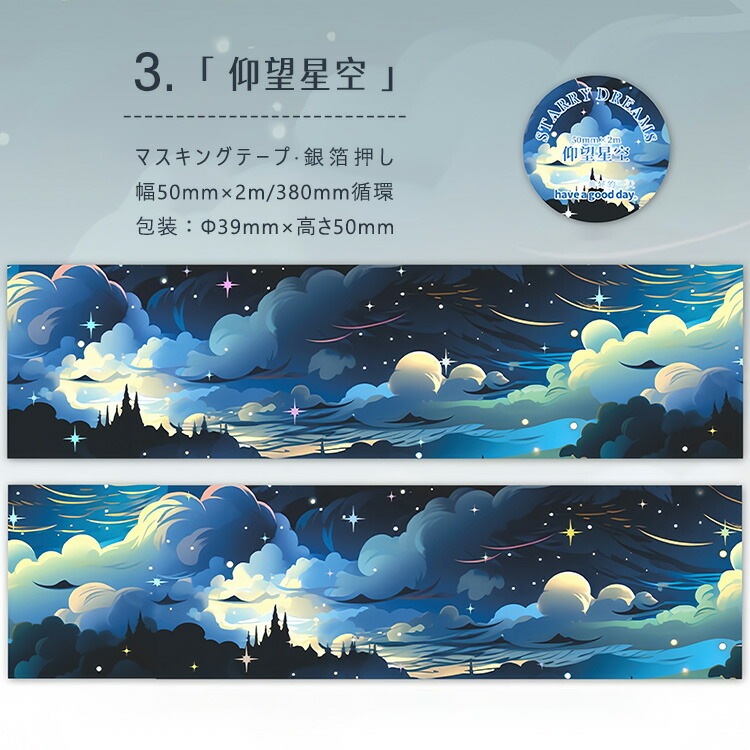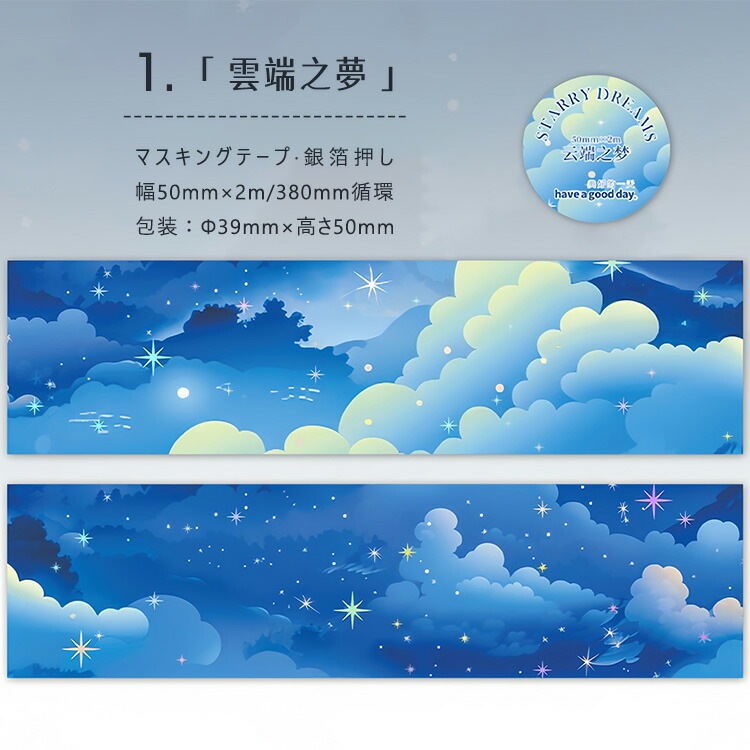 銀箔押し 幅広50mm マスキングテープ くも 雲 星天 月 曇り 曇り空 宇宙 空の模様 幻想的 背景 シール 剝離紙つき コラージュ素材 かわいい ロールシール 背景シール sztz-01-189