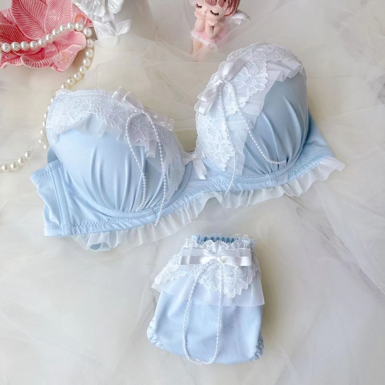 可愛いセット下着 新調したい!ナイトブラ 人気ブラジャー 日本の非スチール リング刺繍薄いカップ学生女の子快適なかわいいギャザー セクシーな下着ブラ セット