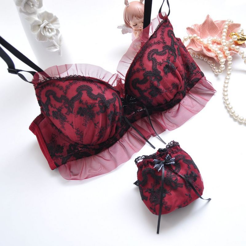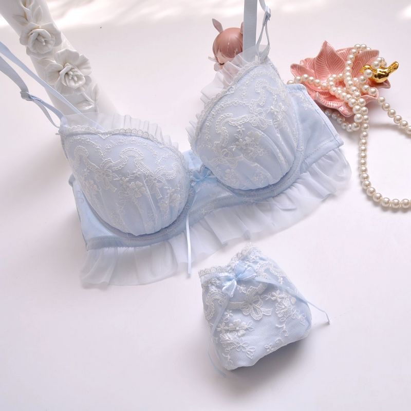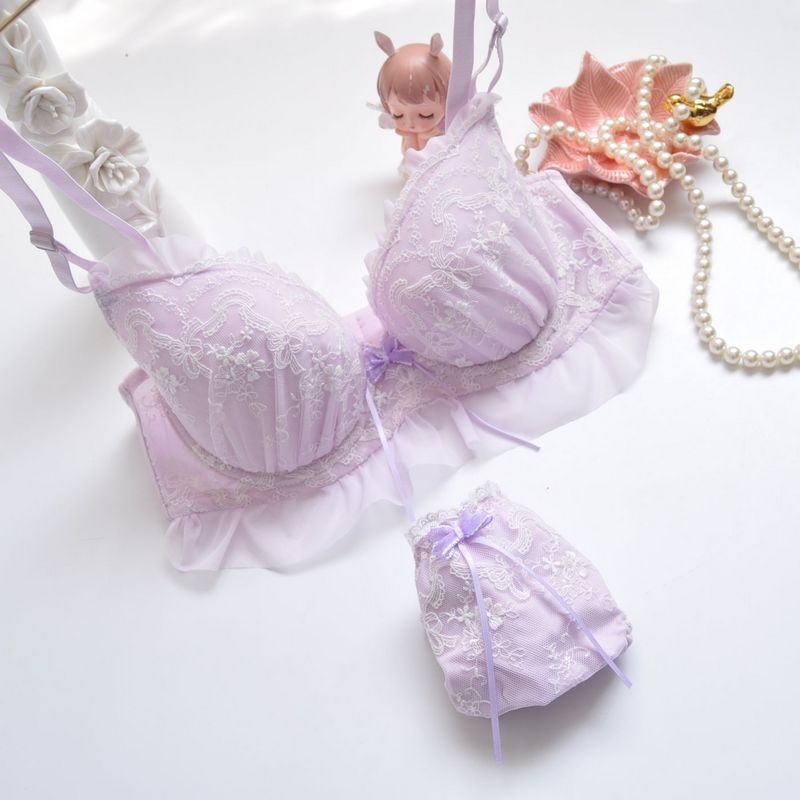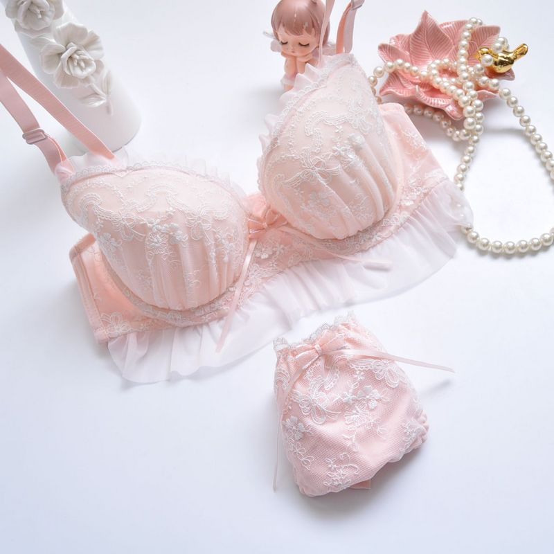 可愛いセット下着 新調したい!ナイトブラ 人気ブラジャー 日本の絶妙な刺繍女子大生かわいいギャザー セクシーなランジェリー ブラセット プラス サイズ