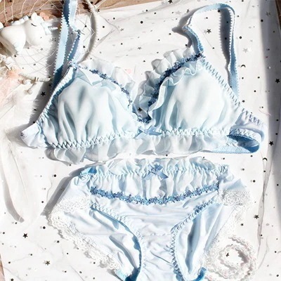 ナイトブラ 人気ブラジャー 可愛いセット下着 新調したい!ナイトブラ セット売りショーツ可愛いセット下着日系の薄いタイプの通気性の下着セットの女性のかわいい柔らかい妹のレース ブラジャー