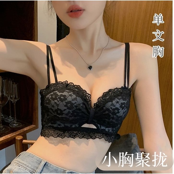 人気ブラジャー 少女下着女性の小さな胸を集めた純欲レース無スチールリング調整型上受平胸専用文ブラセット