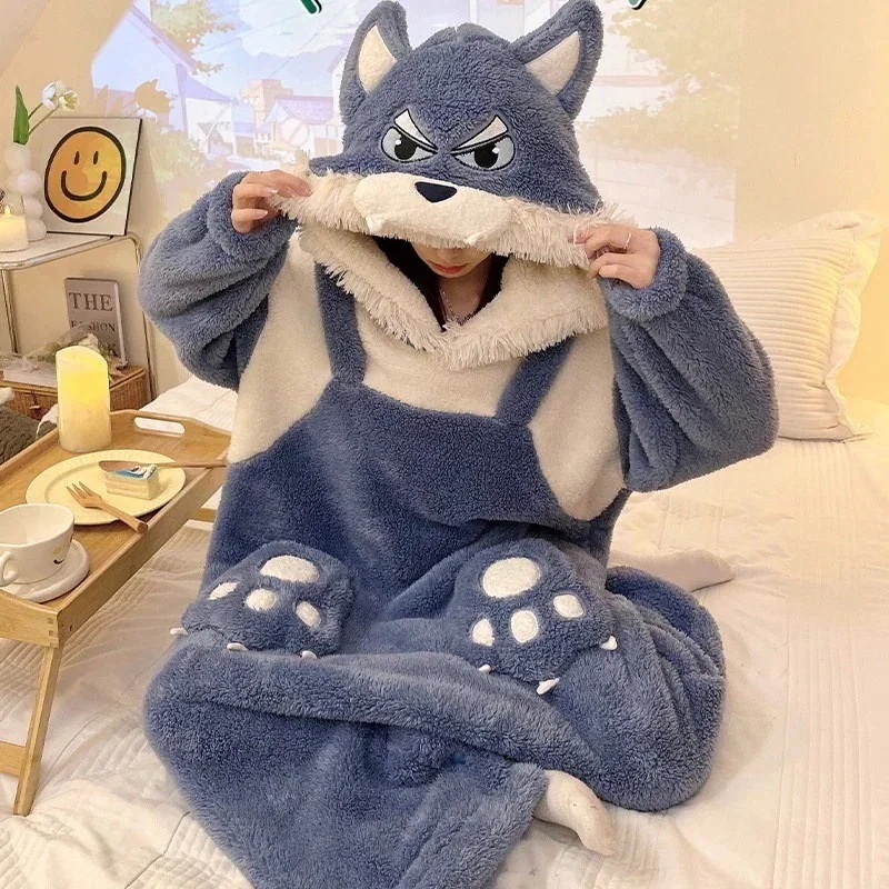 ルームウェア 楽ちんルームウェア Qoo10限定 可愛い 着ぐるみ テレタビーズワンピース 冬かわいい 文化祭 冬 厚 オオカミ頭 着ぐるみ キャラクター 学園 グループ服