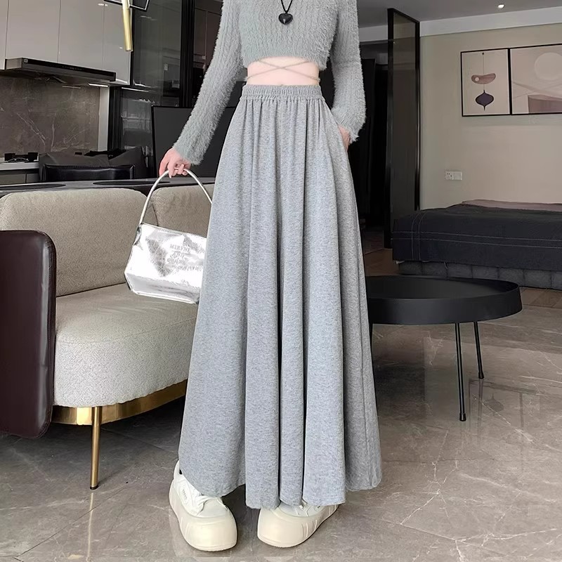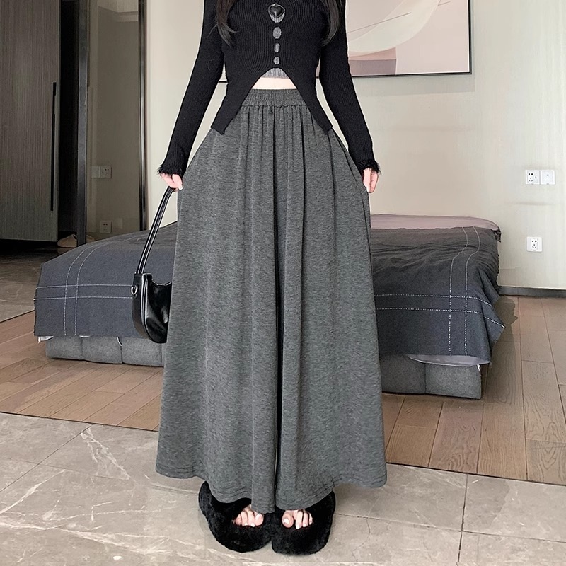 秋冬ソフトなもちもちワイドレッグスカートパンツ 高身長効果&痩せ効果MAX!おしゃれコーデに