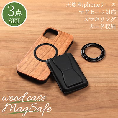 FiOsiphone ケース ウッド iphone17 iphone16 iphone15 iphone14 マグセーフ対応 magsafe 3点セット カード収納 レザー 17 16 リング付き マグネット