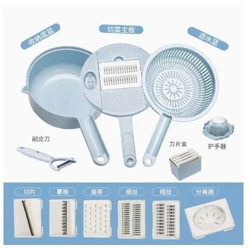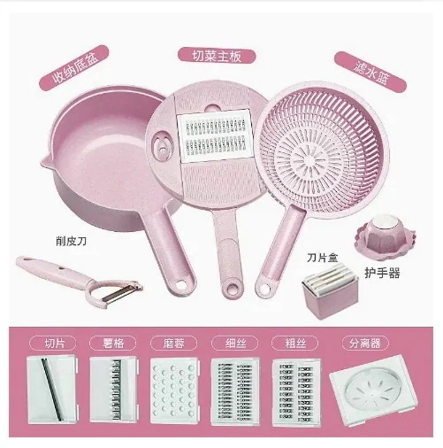 限定SALE!スライサーセット1台8役キャベツ千切り玉ねぎ野菜カッタ野菜細切りみじん切り千切りおろし薄切り水切り皿卵白セパレーター皮引きカッタースライサー調理器セットにんにくおろ