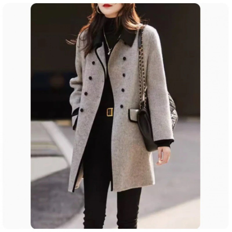 チェスターコート 春秋 レトロ 新作 おしゃれ ダブル ボタン カジュアル ロング 丈 上品 カラー ブロック ターンダウンカラー コート レディース