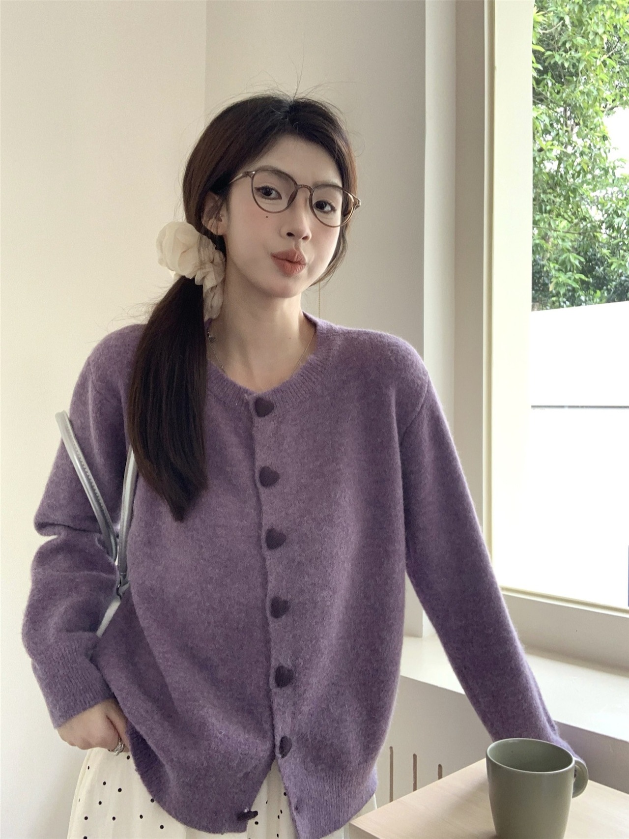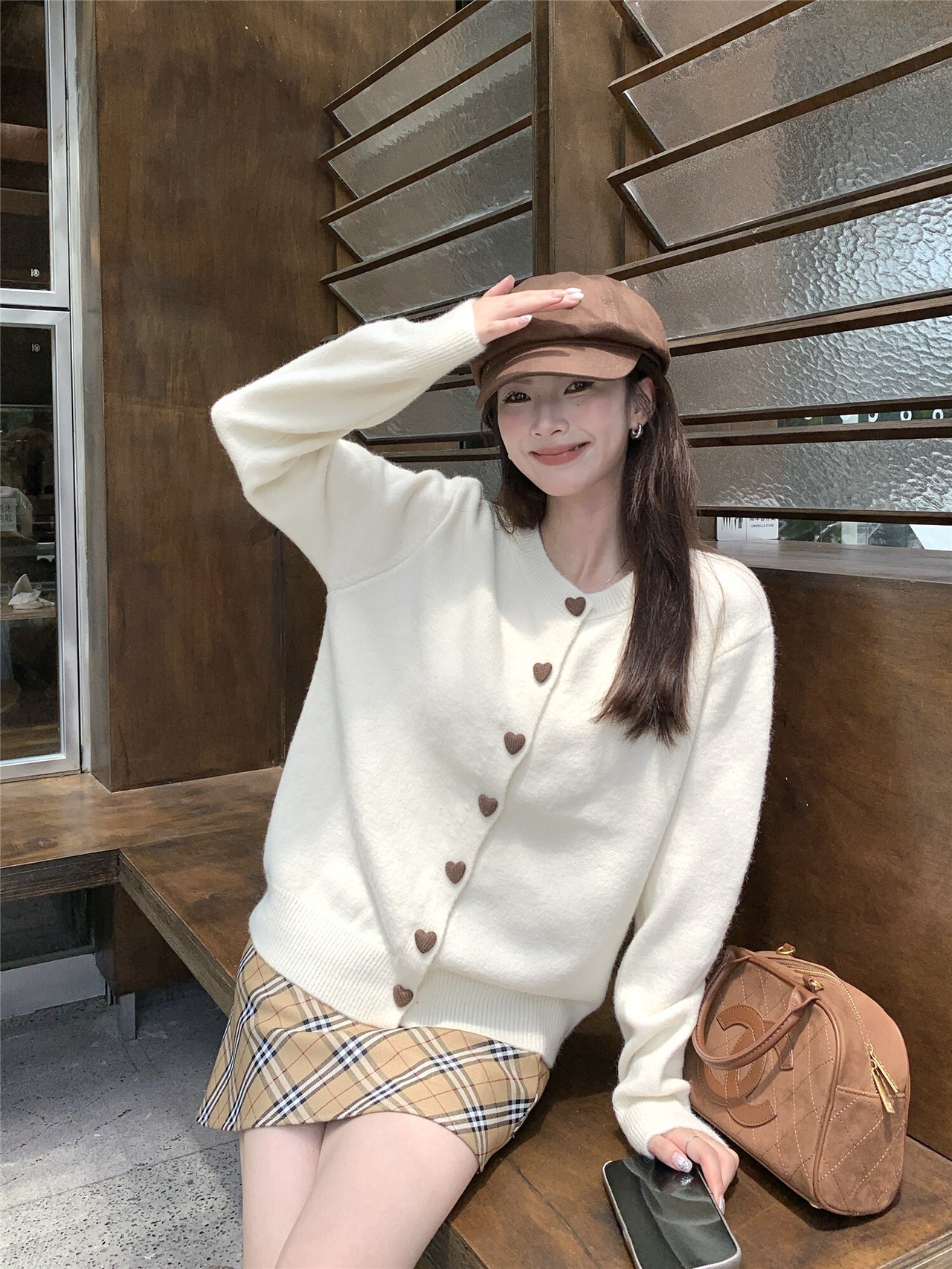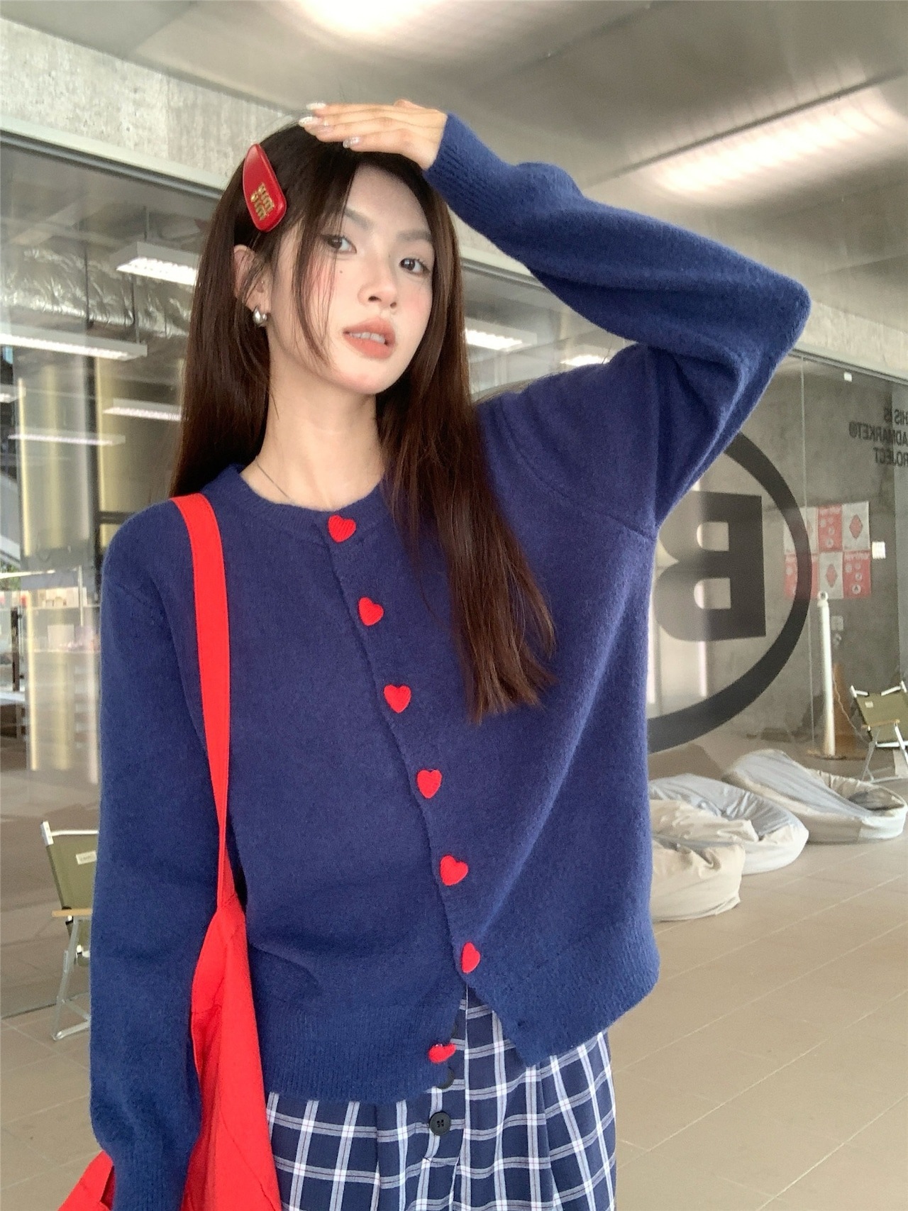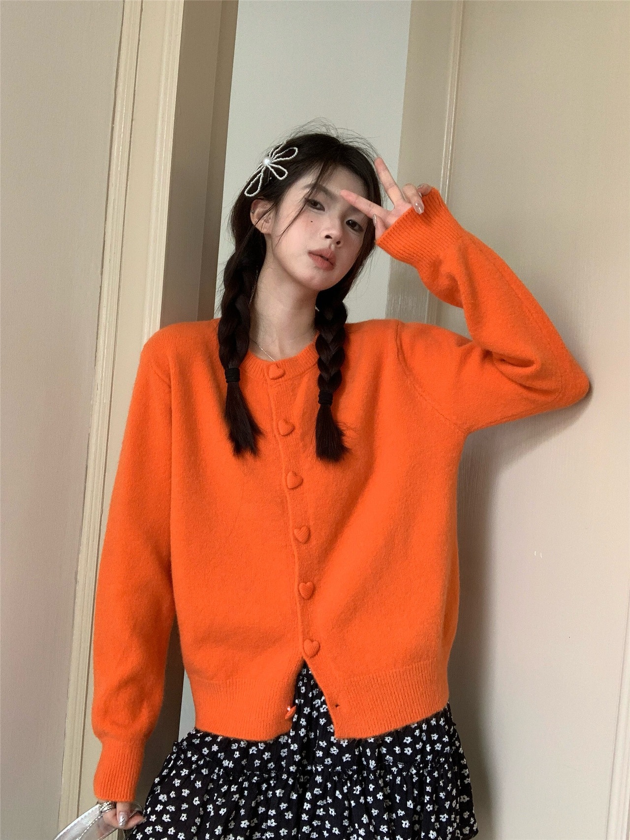 ハートボタンニットカーディガン ニットカーディガン ニット カーディガン セーター レディース 長袖 秋冬 羽織り 大人可愛い 韓国風 ガーリーコーデ C596