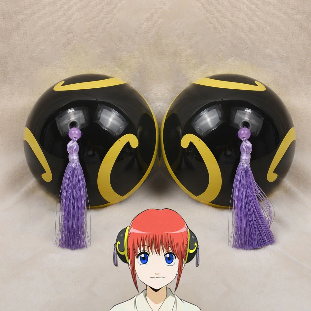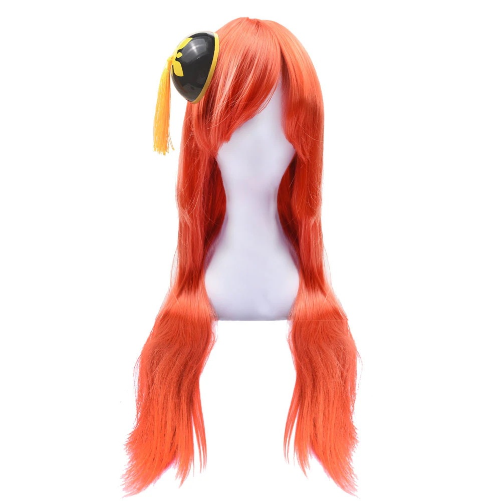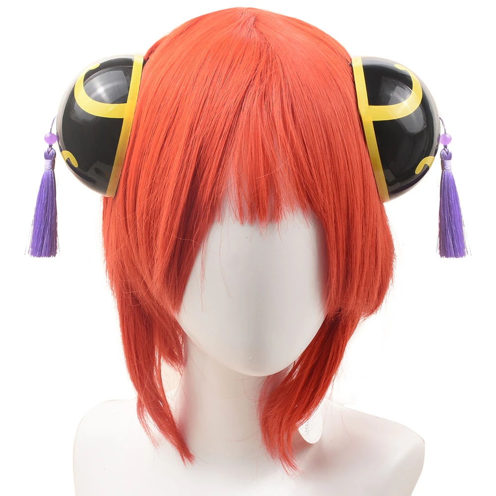 銀魂 江華 頭飾り コスプレ道具 コスチューム 神楽 髪飾り オレンジ色ウィッグ 黒パンツ型髪飾り 四葉バレット