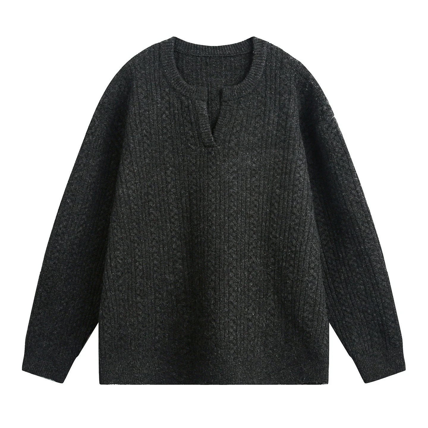 メンズ復古肌理Vネックセーターメンズ春秋怠惰な風でゆポロ襟ニット韓国ベーシックニット