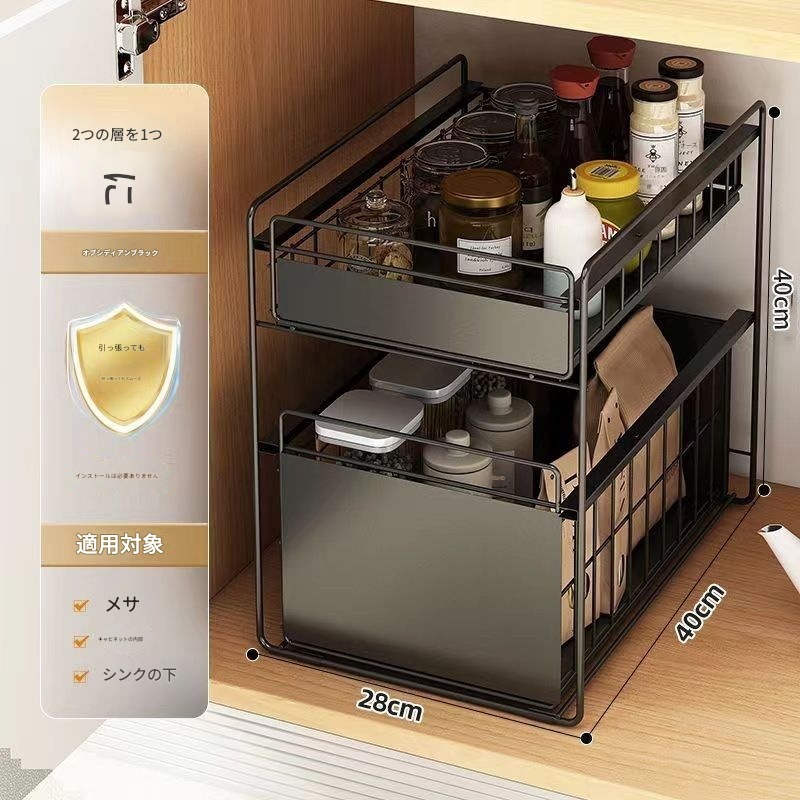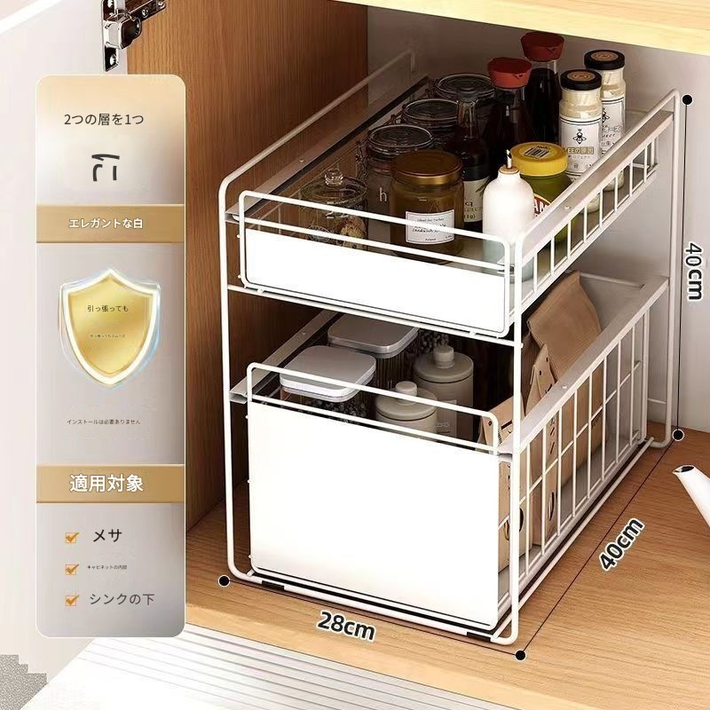 シンク下 収納 スライド 引き出し 2段 スライドラック キッチン 洗面台下 シンク下収納ラック キッチンストッカー好評多し