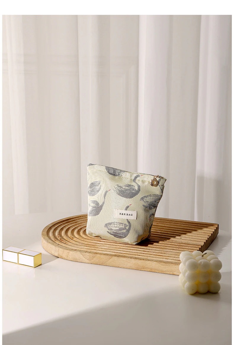 【3日出荷】白鳥のジャカード小銭入れ証明書バッグ内胆嚢洗面バッグ 収納バッグ ポーチ 化粧ポーチ防水