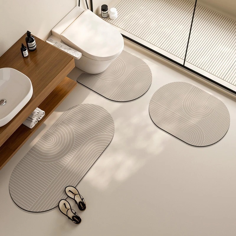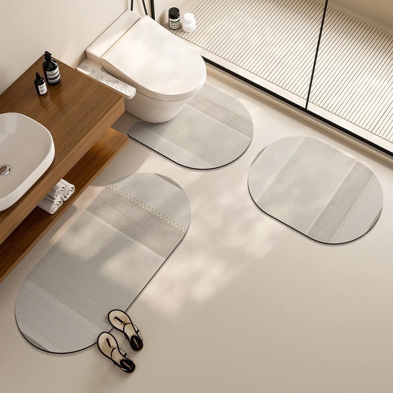 シンプル侘び寂び風バスルーム珪藻土マット 汚れ防止・滑り止めバスルームマット 浴室入口吸水マット
