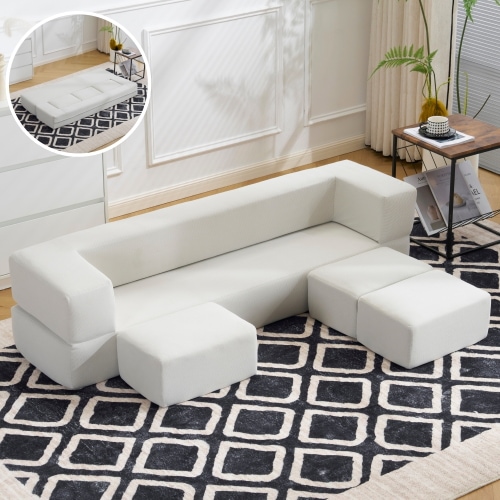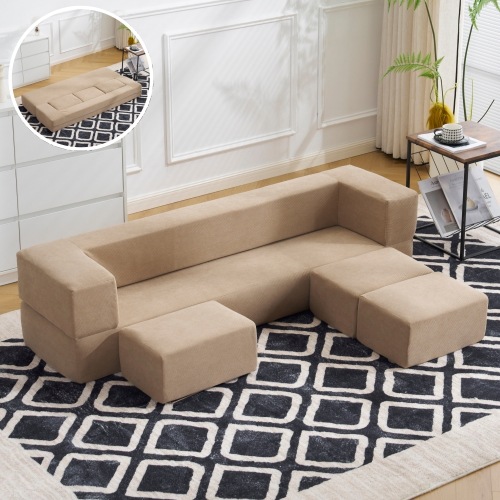 【最大5人掛け/組立不要】コンパクト ローベッド ソファ 圧縮梱包 高反発ウレタン フロアソファ こたつ対応 1+3配置 多用途 28D高密度 洗えるカバー 一人暮らし 省スペース