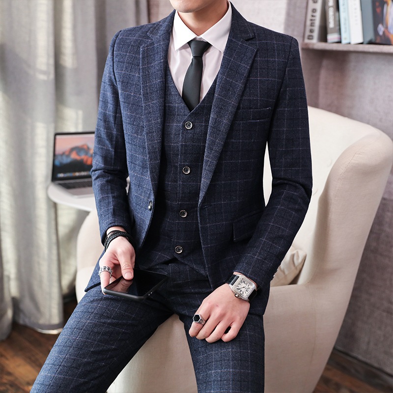 ベスト付き 通気透湿 ウオッシャブル シワ防止 3点セット メンズ ビジネススーツ チェック柄 フォーマルスーツ おしゃれ テーラードセットアップ ワンボタン
