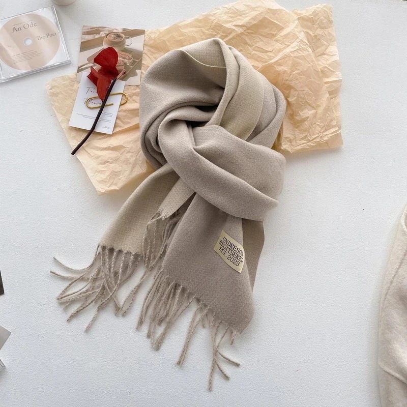 【3日以内に出荷】デイリーマフラー 新しい両面ソリッドカラースカーフ女性秋と冬はイミテーションカシミヤマフラー優しい風日本のタッセルショールを厚くした