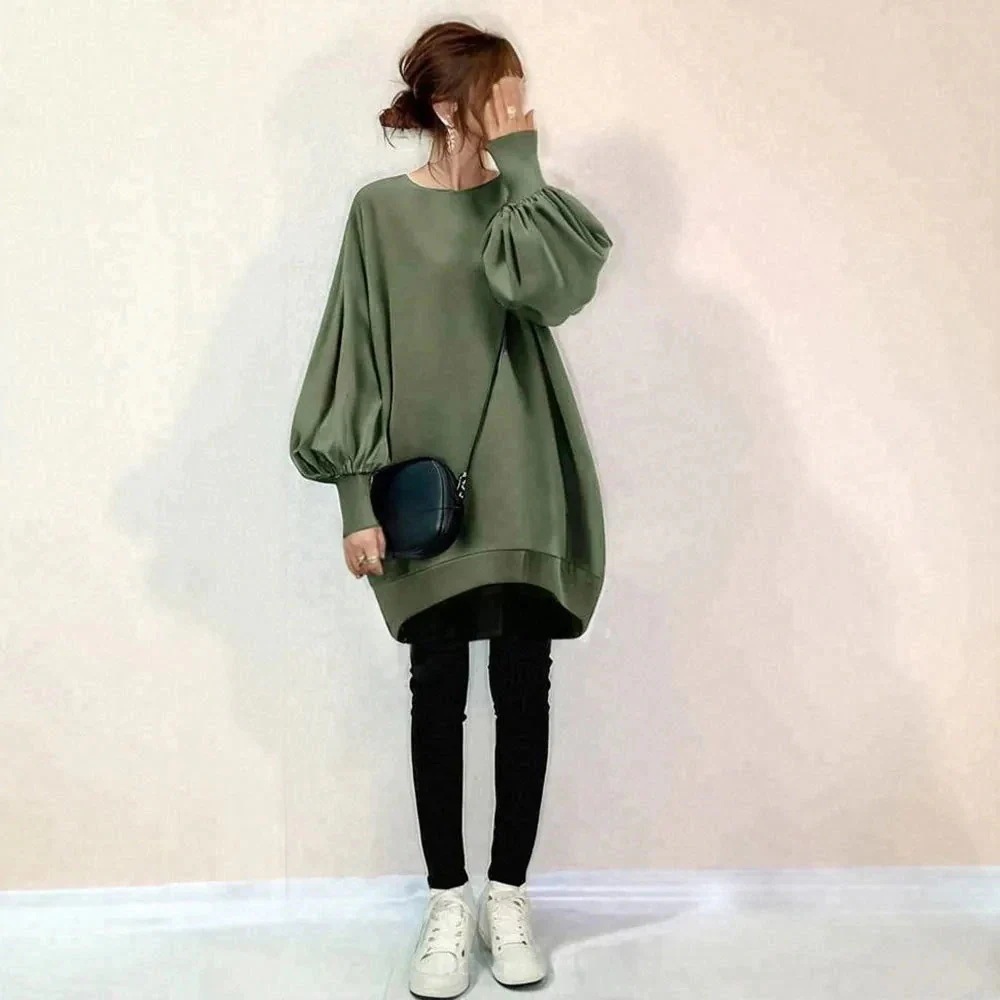 2025 クロスボーダー輸出在庫品日系春秋新作 無地丸襟バルーンスリーブスウェット レディースファッション万能