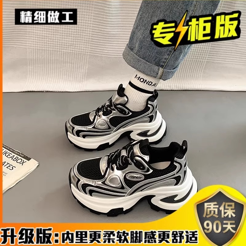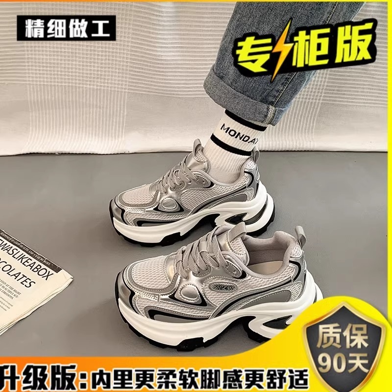 女性用の万能プラットフォームチャンキースニーカー小柄な女性に最適2025 年の新スタイルシルバーのアスレチック カジュアル シューズ