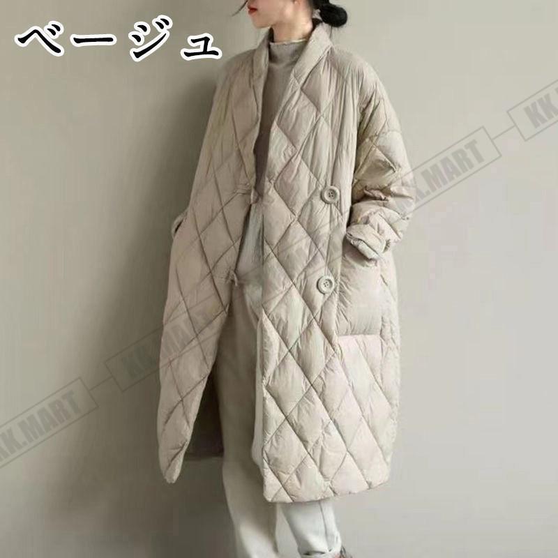 キルティングコート ロングコート レディース アウター 防寒 ダウン 中綿 秋 冬アウター 長袖 冬服 立てネック キルティングジャケット 大きめ ゆったり