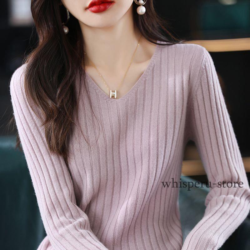 ニット セーター レディース 長袖 Vネック 春秋冬 カジュアル 薄手 新入庫 トップス 無地 スリム ゆるニット 着痩せ おしゃれ ストレッチ