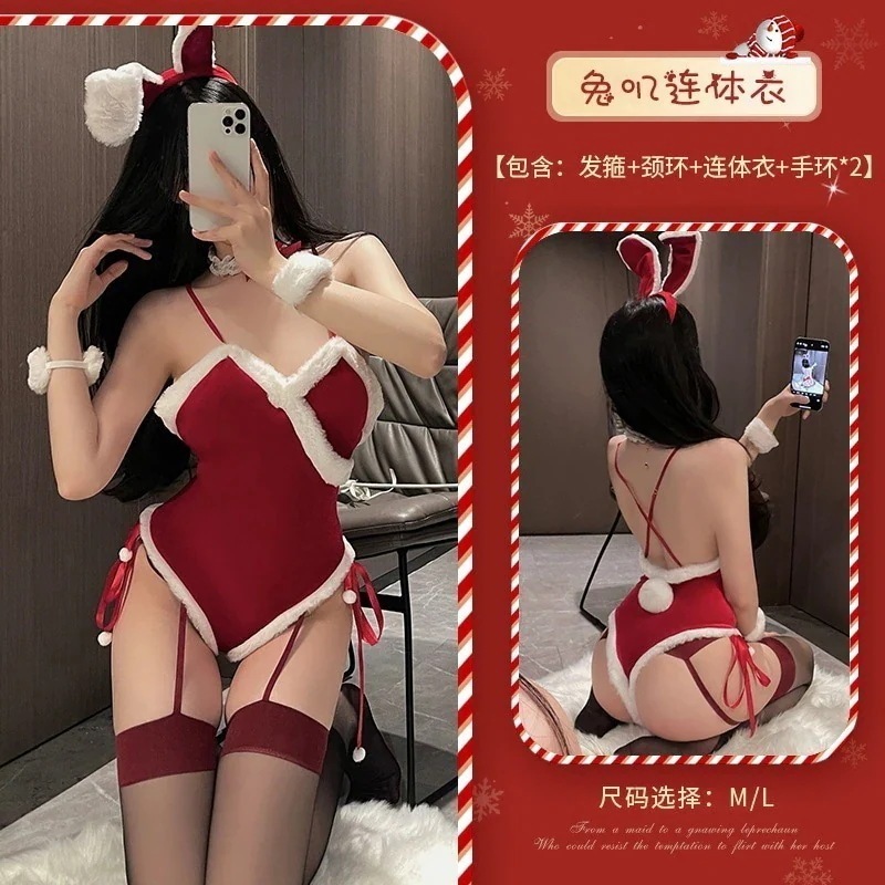 2025クリスマスサンタコスプレ セクシーな下着 バニーガール 制服セット 誘惑 ベルベット クリスマス ドレス レディース 韓国ファッション