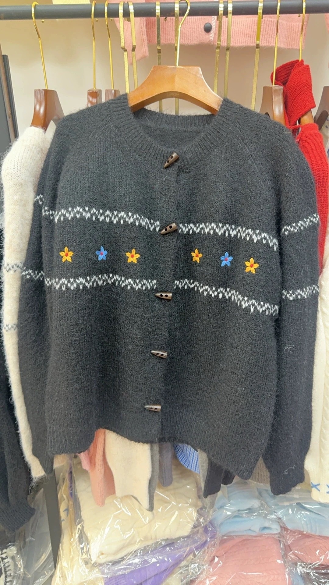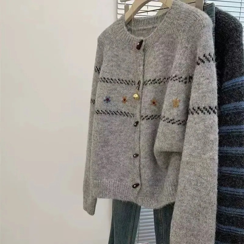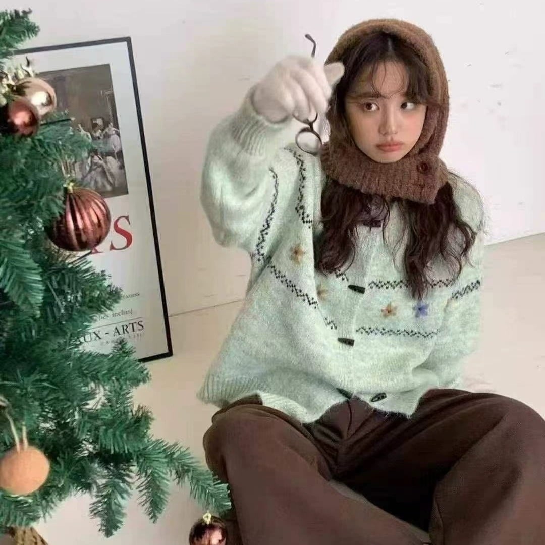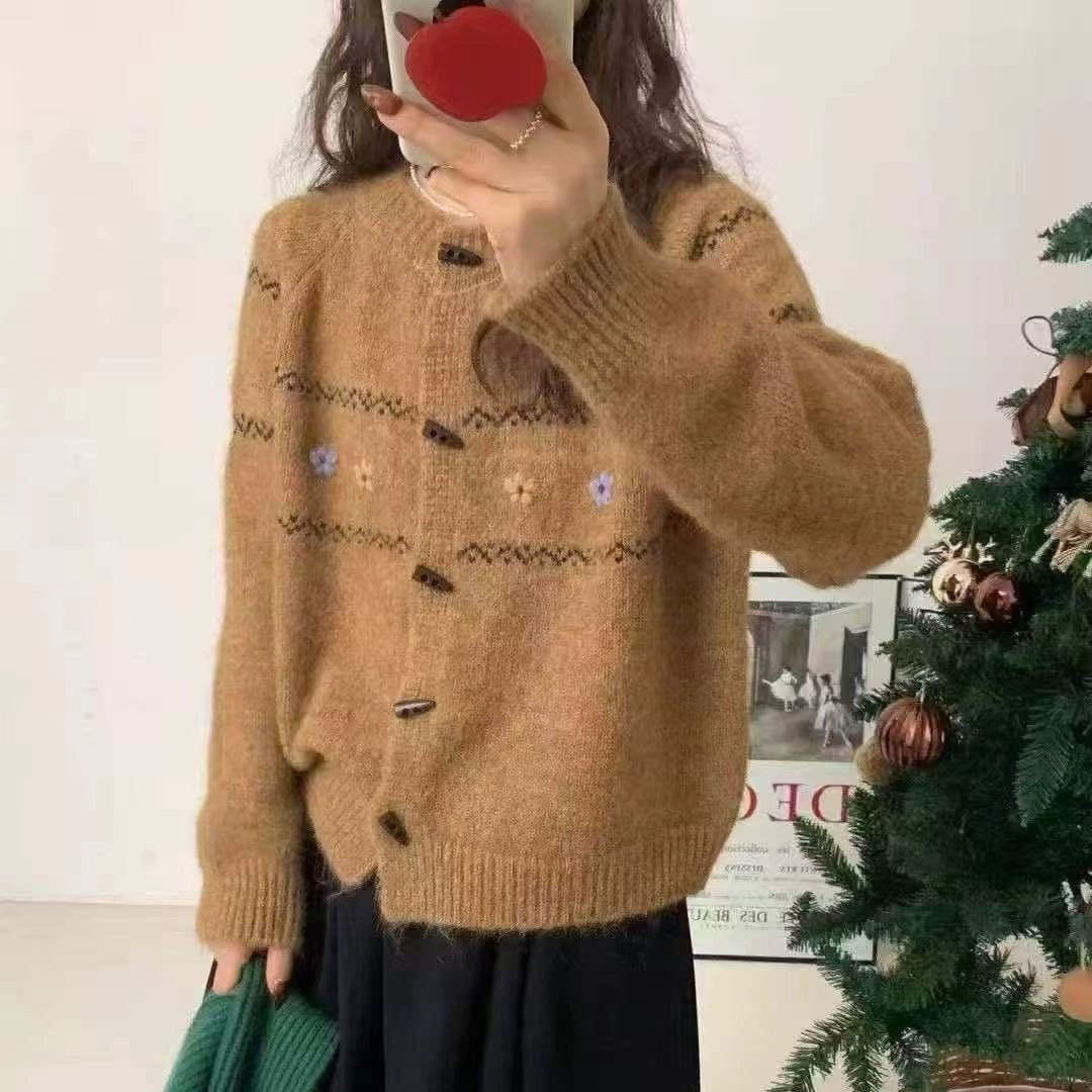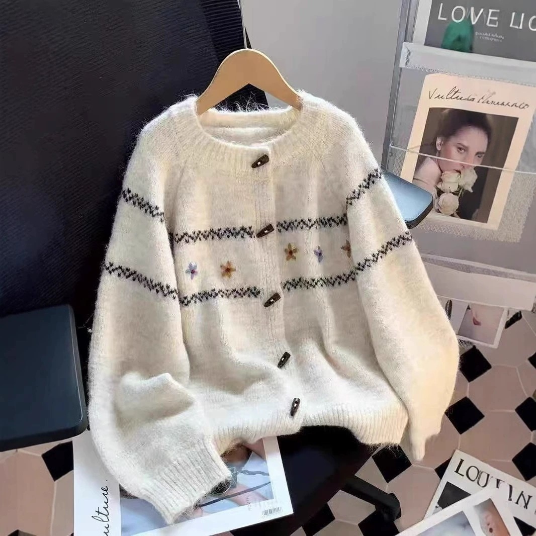韓国系柔らかい牛角ボタンセーターカーディガン優しいゆったりくつろいだトップスニットアウター