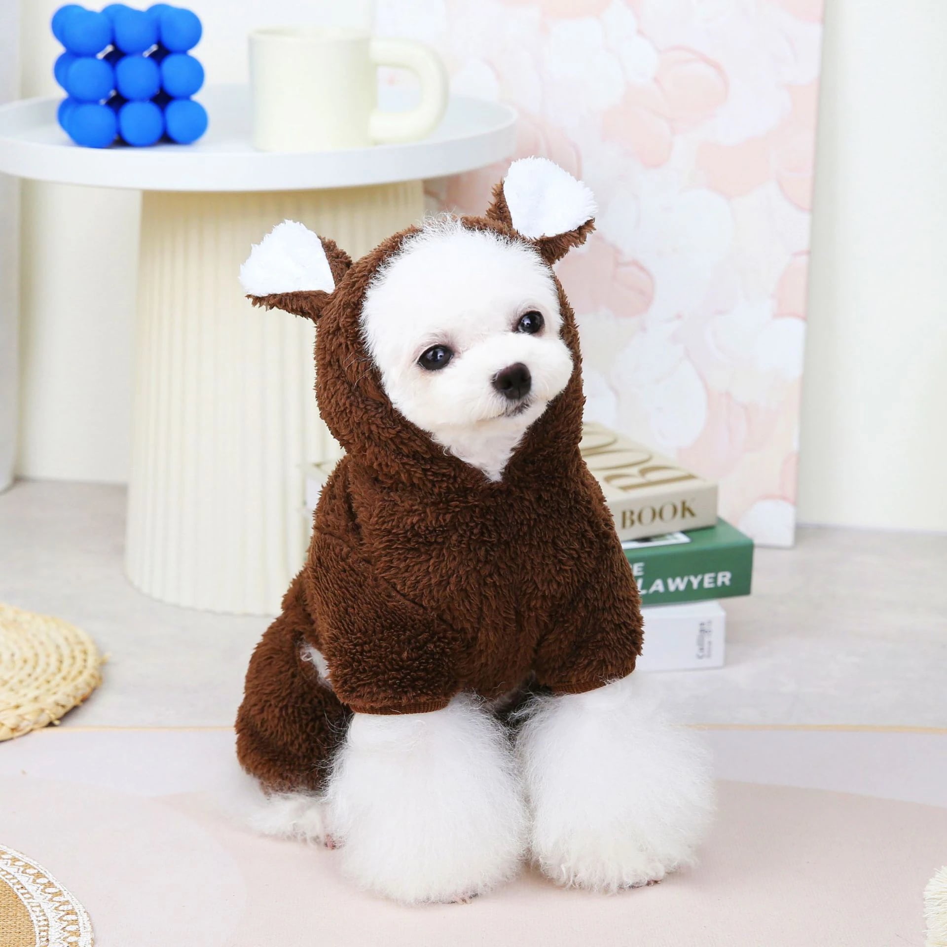 2022年 刺繍ラベル付きクマ柄 4本足フリース 犬用防寒服 秋冬季用 テディベア&フレンチブルドッグ用 ペット服 通年着用可能