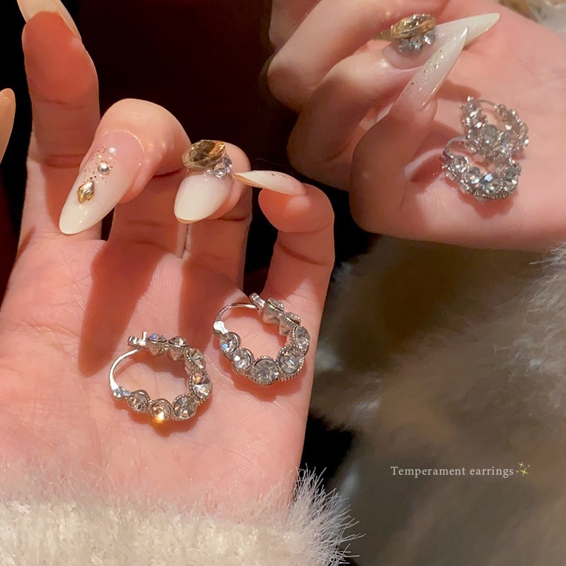 女性用の高級な輝くダイヤモンドフープイヤリングファッショナブルで用途が広いフルダイヤモンドイヤリング